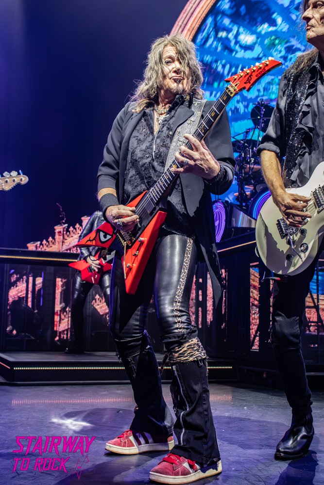 Cualquier atisbo de cansancio abandonó el cuerpo de los presentes en cuánto un águila gigantesca invadió la pantalla que hacía a las veces de backdrop, pues le había llegado el momento a la inmensa “Eagle Fly Free”, esa piedra angular del power metal que casi 40 años después se siente tan fresca y cautivadora como cuándo sobrevoló por primera vez el mundo, seguida de la divertida y pegadiza “A Little is a Little Too Much” del último Giants and Monsters.