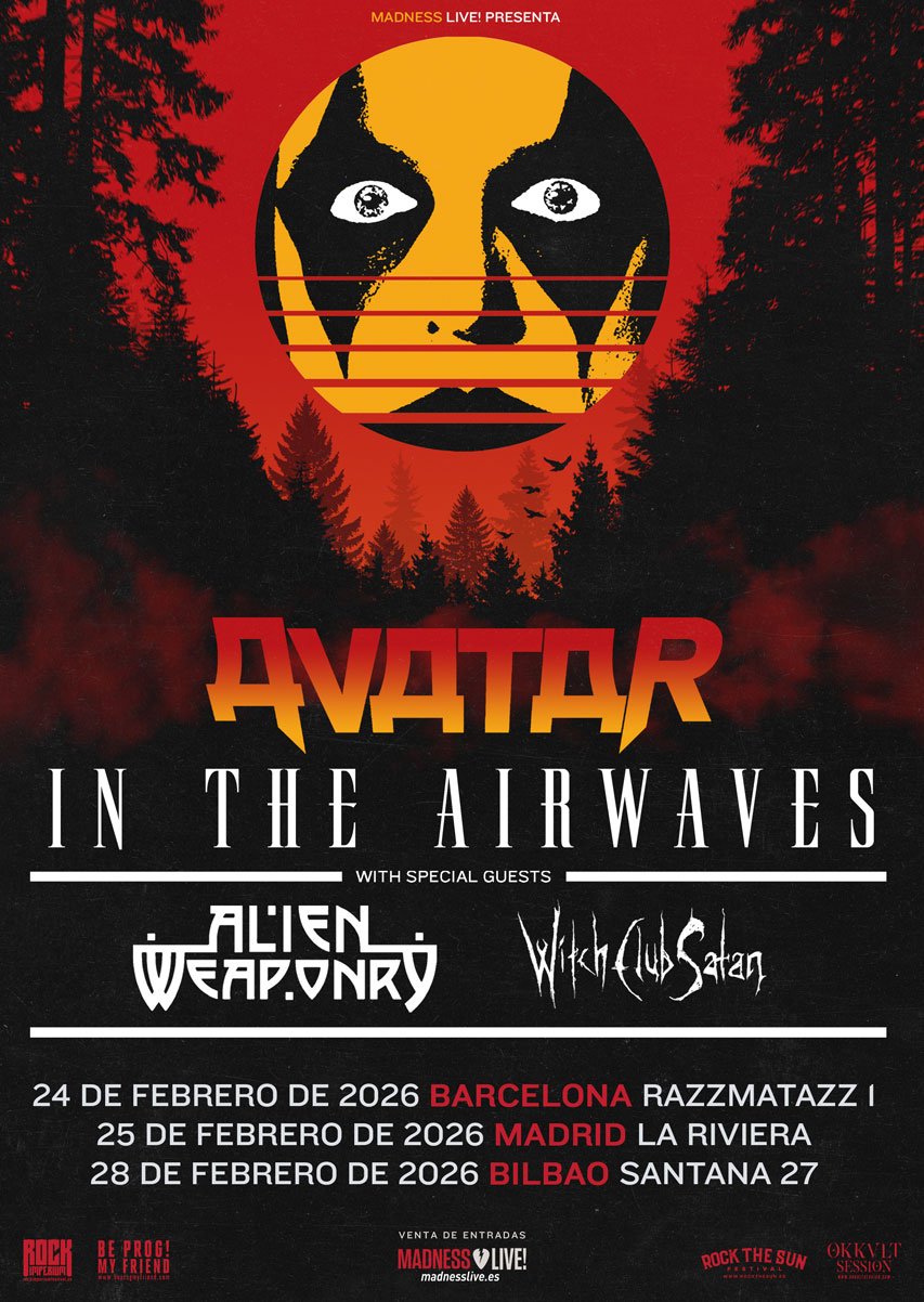 Avatar regresan a los escenarios europeos con uno de los espectáculos más ambiciosos de toda su carrera y España será una de las paradas clave de esta nueva gira en 2026. La banda sueca traerá su inconfundible carnaval oscuro a Barcelona, Madrid y Bilbao acompañados por Alien Weaponry y Witch Club Satan, en una combinación diseñada para convertir cada noche en una experiencia intensa y visceral.