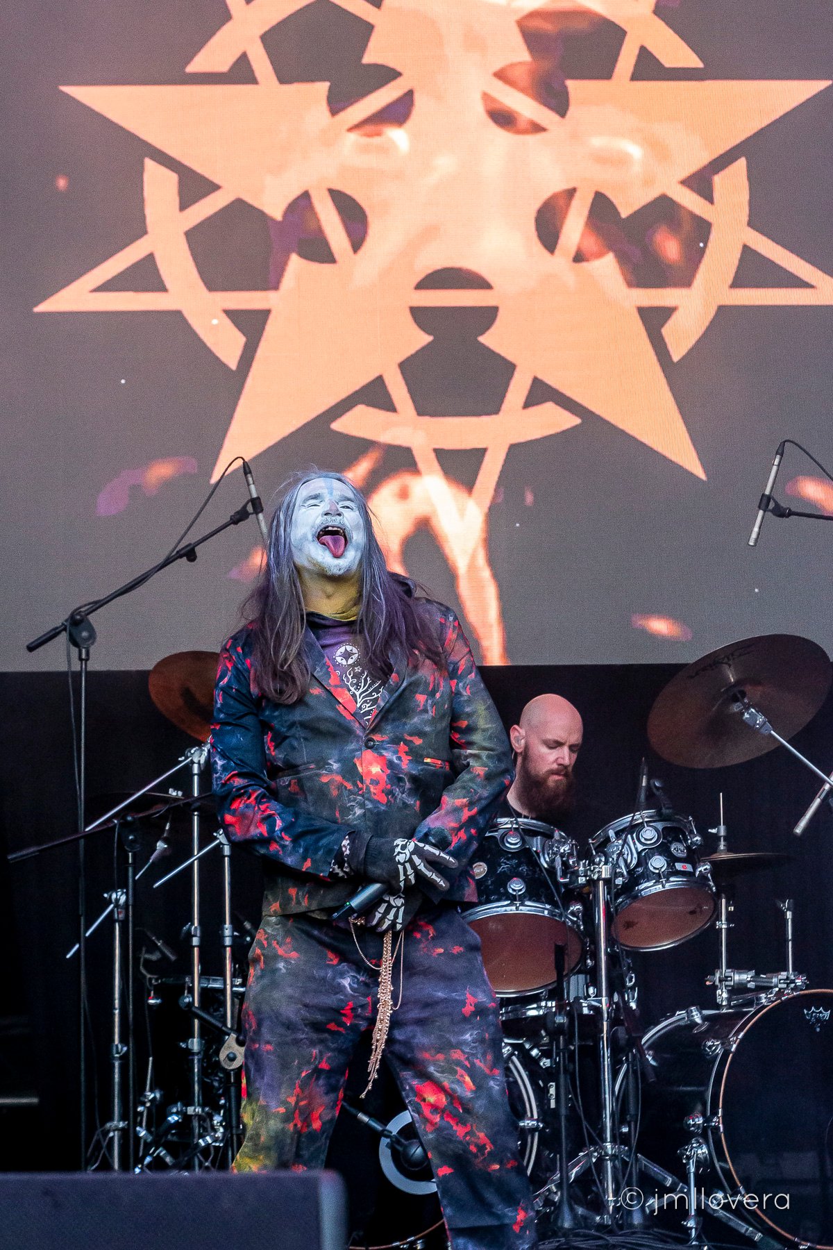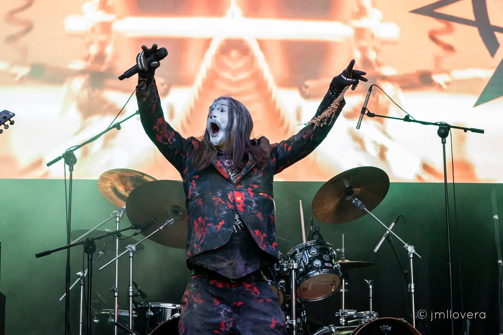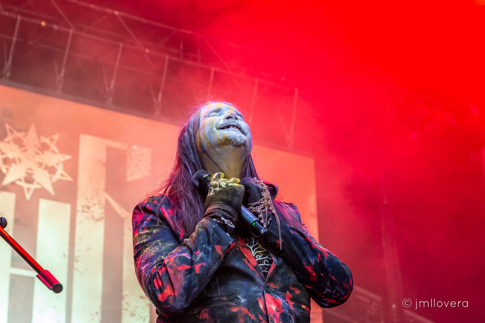 Y llegó el momento más esperado para muchos con la actuación de esos noruegos que llevaron el black metal hacia terrenos progresivos inimaginables ya desde sus inicios. Lo que no esperaba, para nada, era la performance de su vocalista Vicotnick, pasado de vueltas, pero divertido y colorista. Uno no sabe si era un payaso loco haciendo un ritual tirando polvos de colores ya desde “Et Smelter”. De fondo, llevaban imágenes centradas especialmente en la película danesa muda “Haxän, la brujería a través de los tiempos”. Todo un lujo que dio ambiente a ese aquelarre de decibelios y dureza.