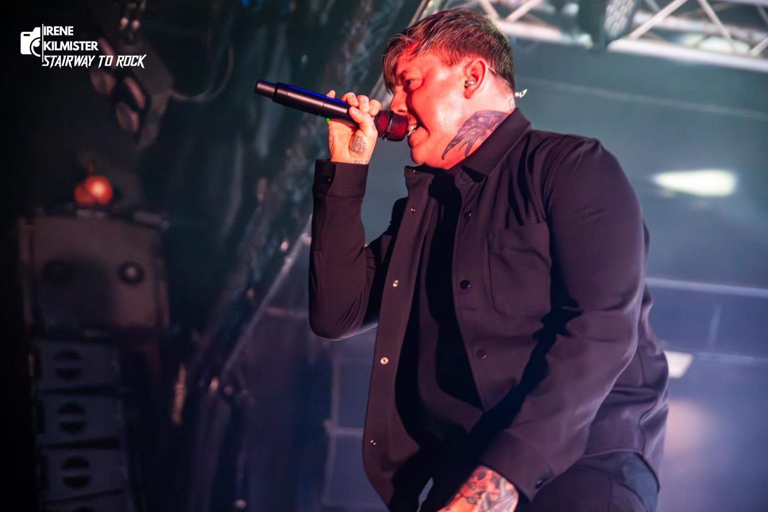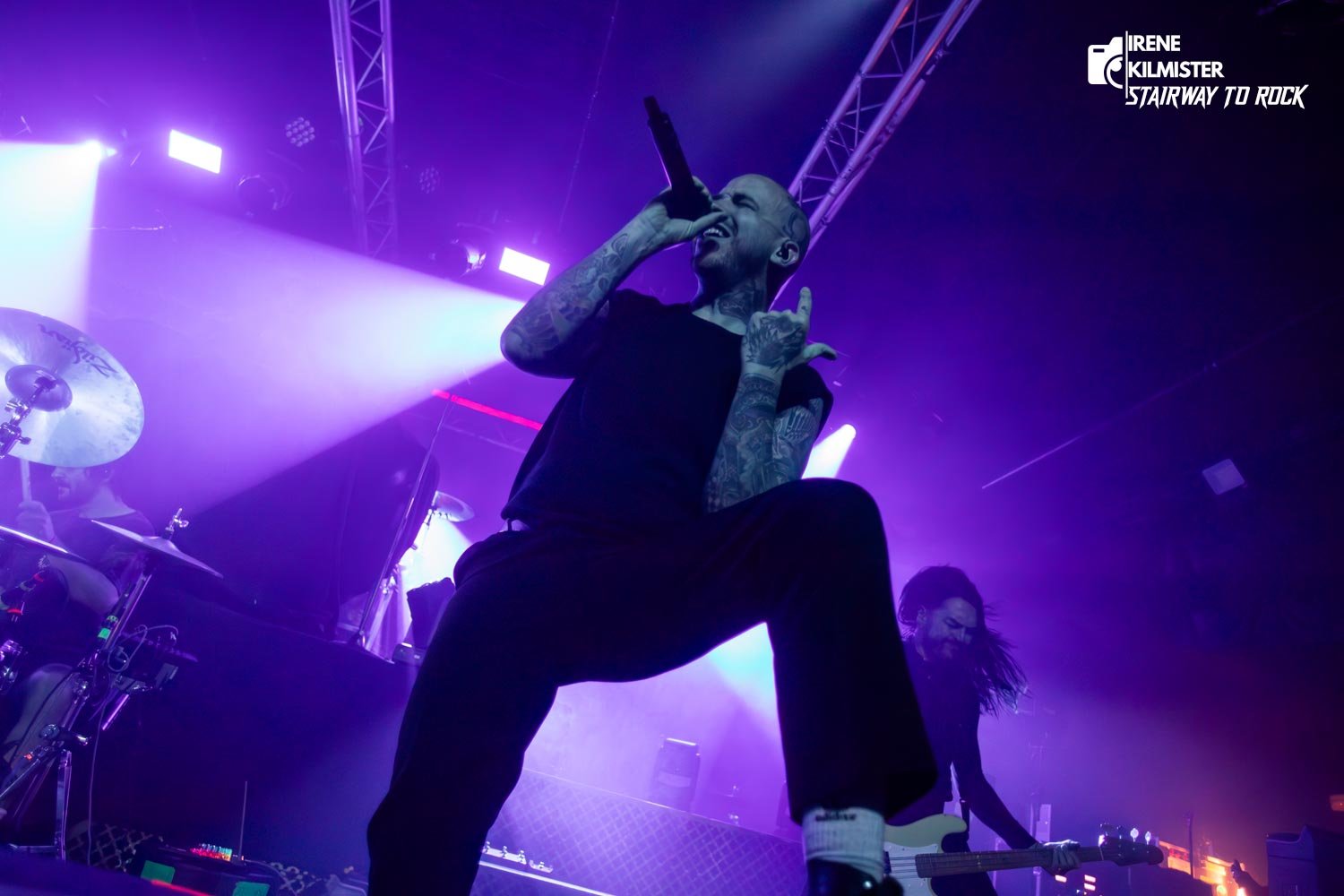 Si alguien pensaba que después del vendaval de Great American Ghost y la oscuridad de After the Burial el listón ya estaba en lo más alto, Bleed From Within se encargaron de pulverizarlo. Desde el primer golpe de “Violent Nature”, quedó claro que lo suyo no es solo técnica o potencia: es presencia. Scott Kennedy domina el escenario con la seguridad de quien sabe que cada gutural suyo puede mover montañas, mientras Steven Jones aporta ese contraste melódico que eleva cada estribillo a una dimensión casi épica. La compenetración entre ambos no es solo musical, es magnética; el rugido y la melodía bailando en un mismo eje.
