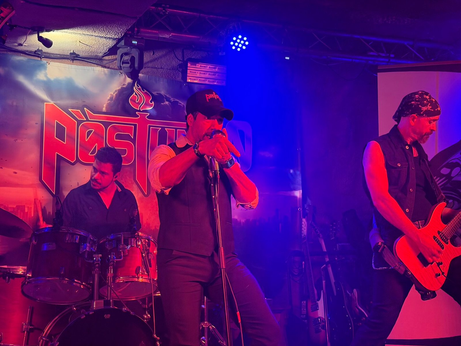 Los primeros en subir al escenario fueron Pòstum-0, que iniciaron su descarga de Metal y Hard Rock poco después de que se abrieran las puertas, y todavía con muy poca gente dentro. Pero esto no impidió que lo dieran todo en un concierto especial, puesto que era el último de su batería. Su sonido fue muy bueno desde el principio, y su música cañera, en la que destacaba una voz muy potente y rockera. Quizá su estilo musical se alejaba algo de la propuesta del cabeza de cartel, pero he de decir que yo no les había escuchado nunca y me convencieron totalmente. Sobre todo por el buen quehacer en los solos de guitarra y su gran personalidad a la hora de presentar las canciones.