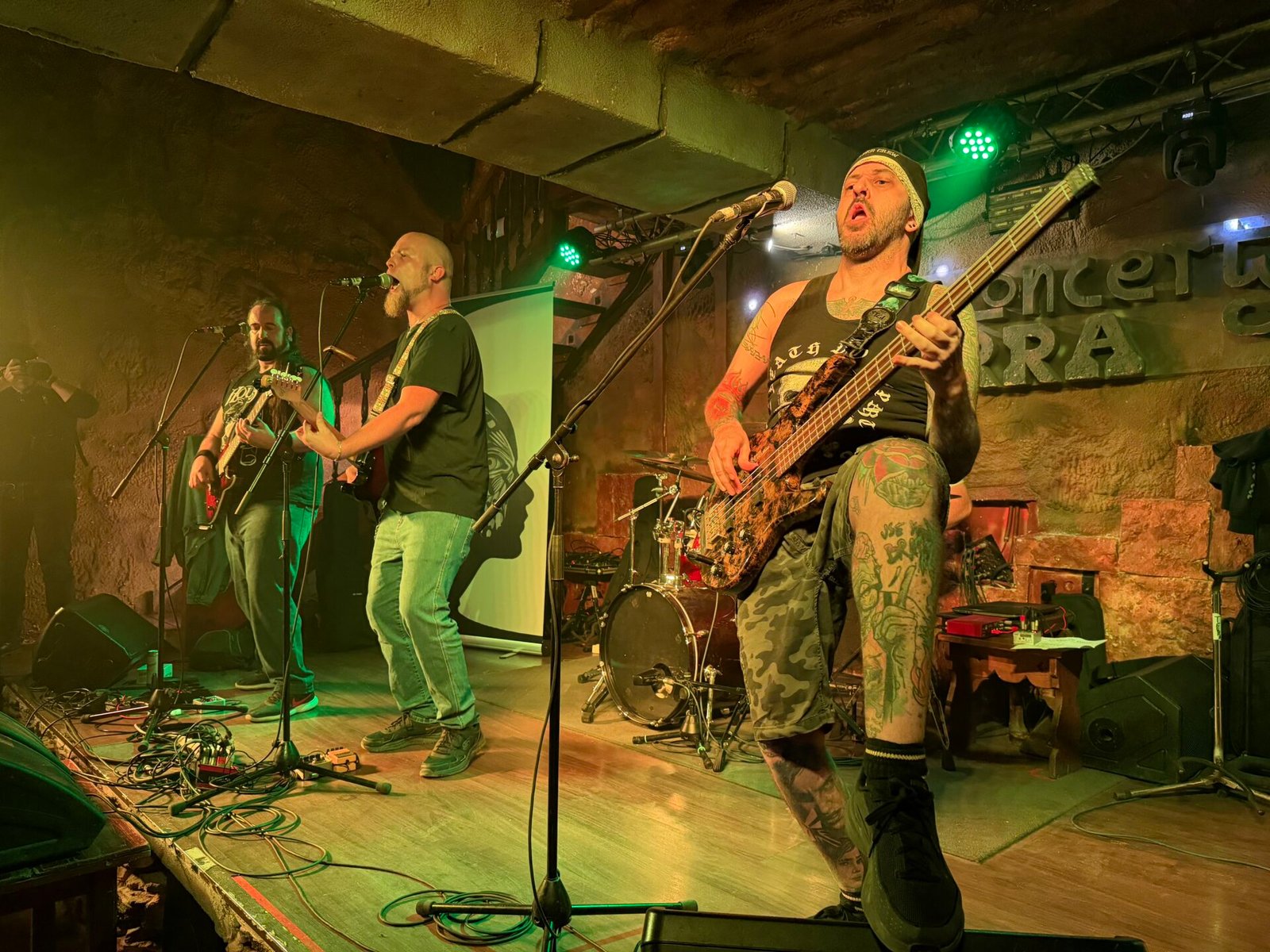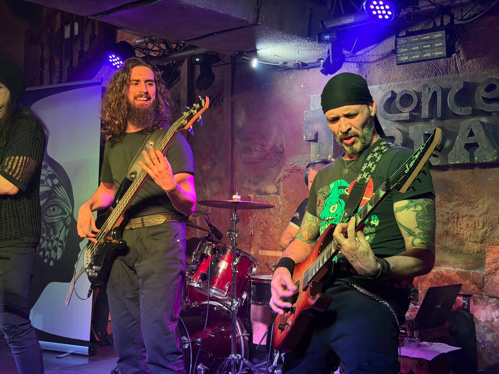 Esto último lo digo porque lo hacían a dos voces. Por una parte el vocalista de la banda hablaba normal sobre cada tema, pero luego su bajista usaba una especie de vocecilla cómica que les daba un punto diferencial y divertido. Esto en las presentaciones, porque cuando se ponían a tocar el bajo hizo unos muy buenos coros que acompañaban a la perfección la versatilidad del cantante, que era capaz tanto de desgarrar la voz como de hacerla limpia. Muy buenos temas, muy buena actuación y un excelente sabor de boca, sobre todo al cerrar con «El Amo», una canción de metal clásico que es muy directa y pura energía. Con ella, ayudaron a que el público se encendiese.