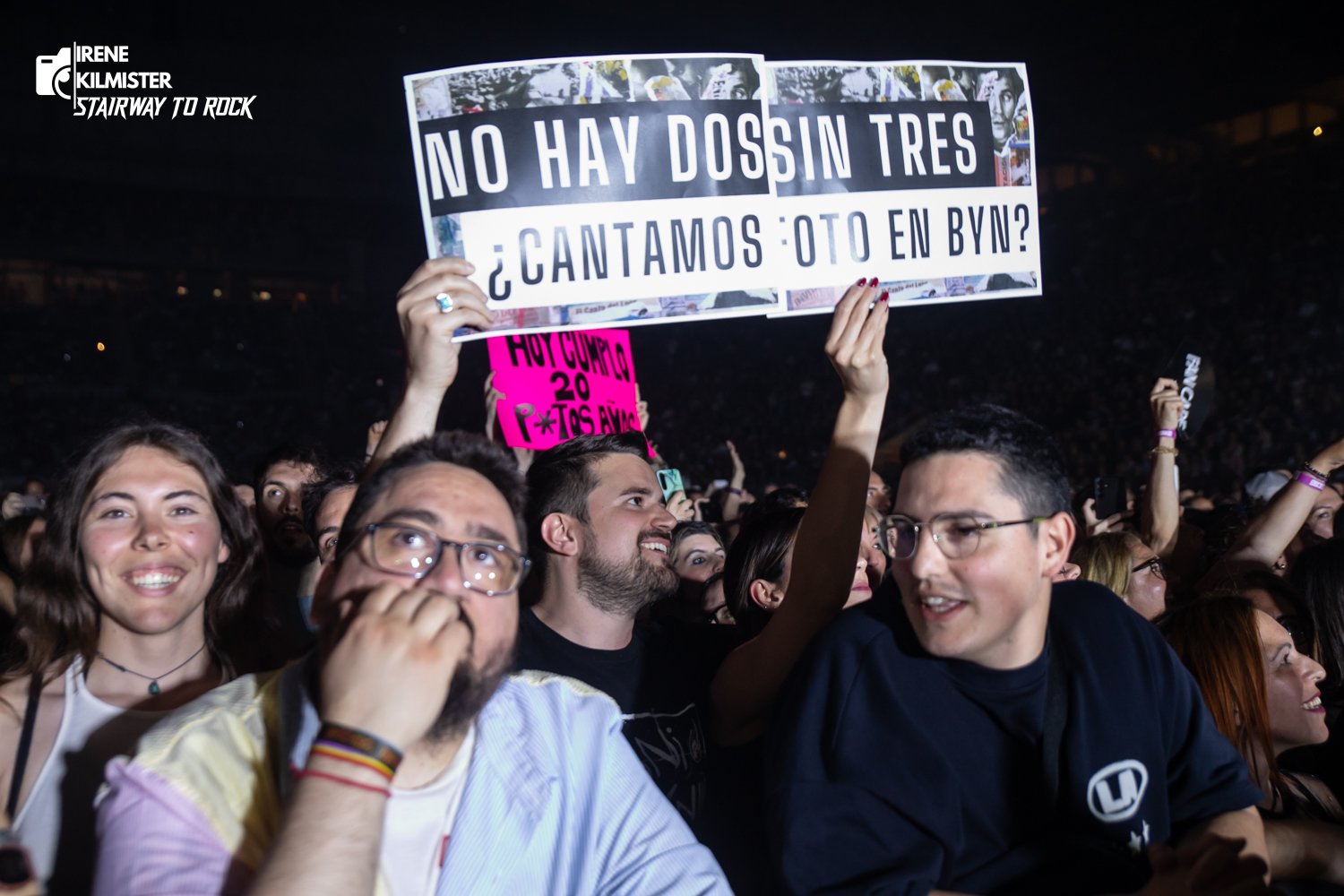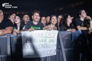 Dentro de toda esta secuencia de temas maravillosos que la gente no paró de cantar, hubo dos puntos clave que terminaron de conquistar a las 18k personas que allí nos encontrábamos. El primero llega cuando dos chicos del público con pancartas que pedían subir a actuar esa noche, finalmente pudieron cumplir su sueño e interpretaron “Foto en ByN” con la banda. Bien es cierto que Jordi y Carlos (así se llamaban los chicos) son reincidentes ya, aunque eso no deja de lado ese punto de humildad por parte del artista, cediendo su espacio en un día como ese, a gente que aún está empezando.