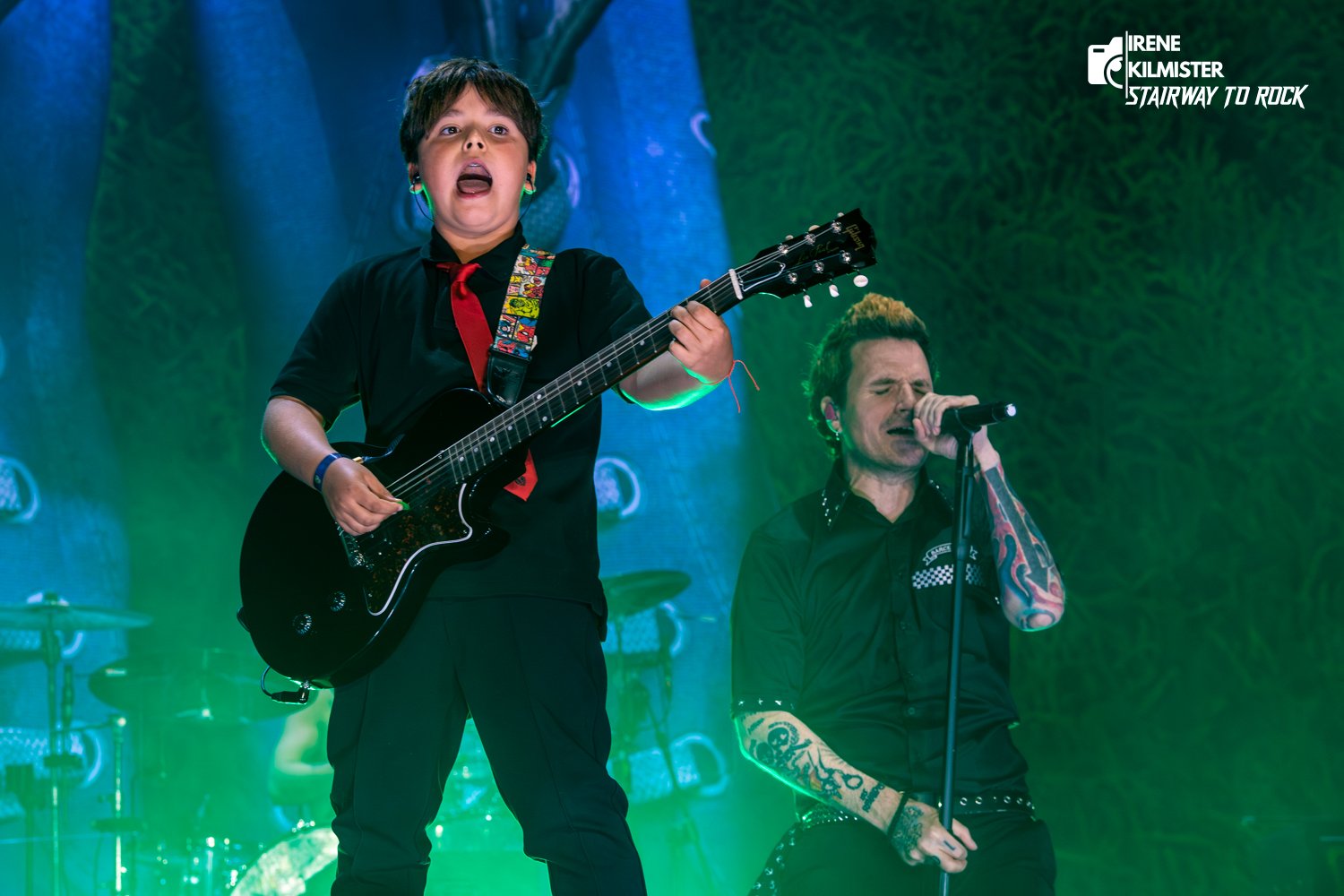 La siguiente en sonar fue «Volverá», y contaron con un invitado de lujo, Oli Gutiérrez, hijo de Rulo, que con tan solo ocho años mostraba una actitud rockera digna de una vieja leyenda. Seguimos en esta primera parte con la vista puesta en la época de El Canto del Loco con “Desaparece», «Vuelve”, “Besos”, la balada “Tal como eres” y las muy coreadas “A contracorriente” y “Son sueños”.