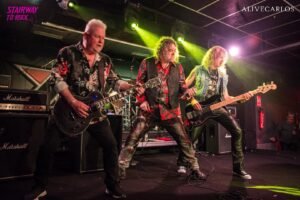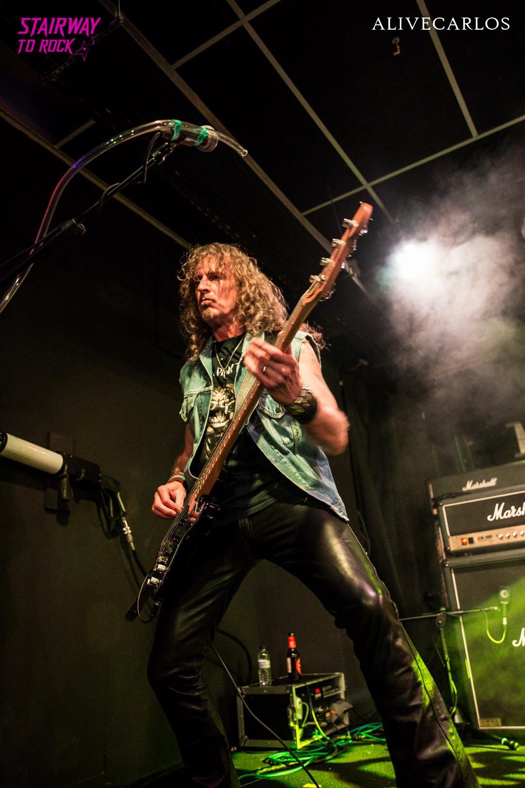 En lo personal, era la tercera vez que disfrutaba de Tygers of Pan Tang en directo, por lo que sabía qué esperar de ellos: primero en el Rockfest de 2018, así como un año después en el Metalcova Fest XII, Asociación de metal underground de la que formo parte activamente. Algo más tarde de las 20h salían sobre el escenario para abrir la velada con «Love Don’t Stay», de su tercer disco de 1981 Crazy Nights. Como era de esperar, quisieron homenajear el cuarenta y cinco cumpleaños de su legendario segundo disco Spellbound (1981 fue productivo para ellos), por lo que tocaron la icónica «Gangland». Llegaba la hora del material más reciente con «Keeping Me Alive» de su Ambush (2012), que fue seguida por «Back for Good», de su elepé más actual Bloodlines (2023). Dedicaron «Rock Candy» (Animal Instinct del 2008) a las chicas del público, para luego sorprendernos con una canción inédita, «Electrified», que será publicado el 4 de mayo (referencia a Star Wars), para su nuevo disco que saldrá este mismo año.