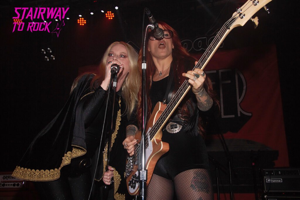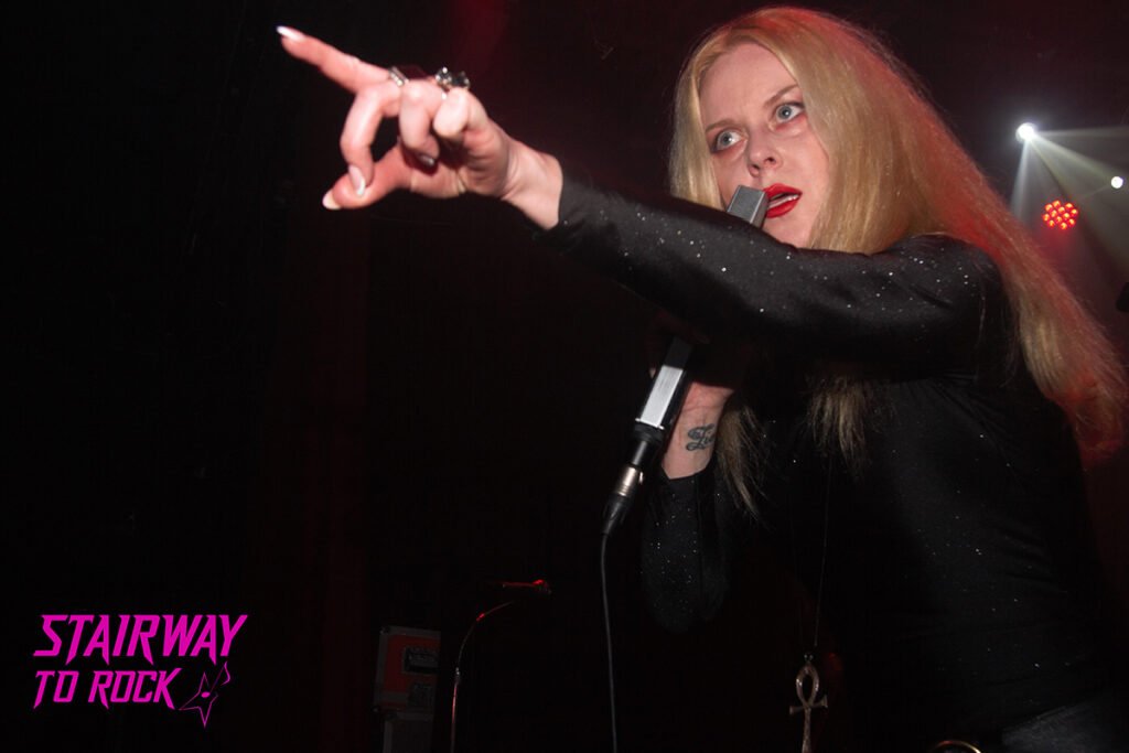 El material más reciente del Lucifer V de 2024 fue introducido en «Riding Reaper», que enganchó como un guante con «Wild Hearses», perteneciente al cuarto elepé. Ya entregado a estas alturas, el público celebró con efusividad la homónima «Lucifer del tercer disco, que fue seguida por el aliento frío de la muerte en la cercana al doom «At the Mortuary». Es evidente que Johanna sabe cómo mantener enganchado al público, bien respaldada por la base rítmica y los afilados solos de guitarra de Max, que pareciera que llevase años tocando con sus compañeros. Con quién coincidió hace tiempo fue con Claudia, en los ya mencionados The Mothercrow.
