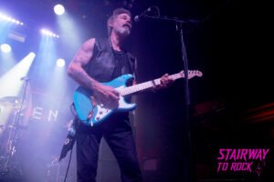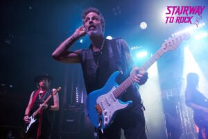 El inicio con «Life Unchained» fue la apertura de un portal. Adrian Smith, ese arquitecto del metal británico cuya sombra se proyecta sobre la historia del rock, empuñó su guitarra con la solemnidad de un rey que regresa a sus tierras. A su lado, Kotzen, el dandi del blues-rock, respondía con esa técnica sobrenatural de dedos desnudos, sin púa, como si estuviera extrayendo confesiones directamente de las cuerdas. La dualidad de sus voces —la de Smith, con ese grano honesto de la clase obrera de Londres, y la de Kotzen, una mezcla imposible de soul volcánico y terciopelo— creó una armonía que en «Black Light» y «Wraith» elevó el misticismo del recinto a niveles estratosféricos.