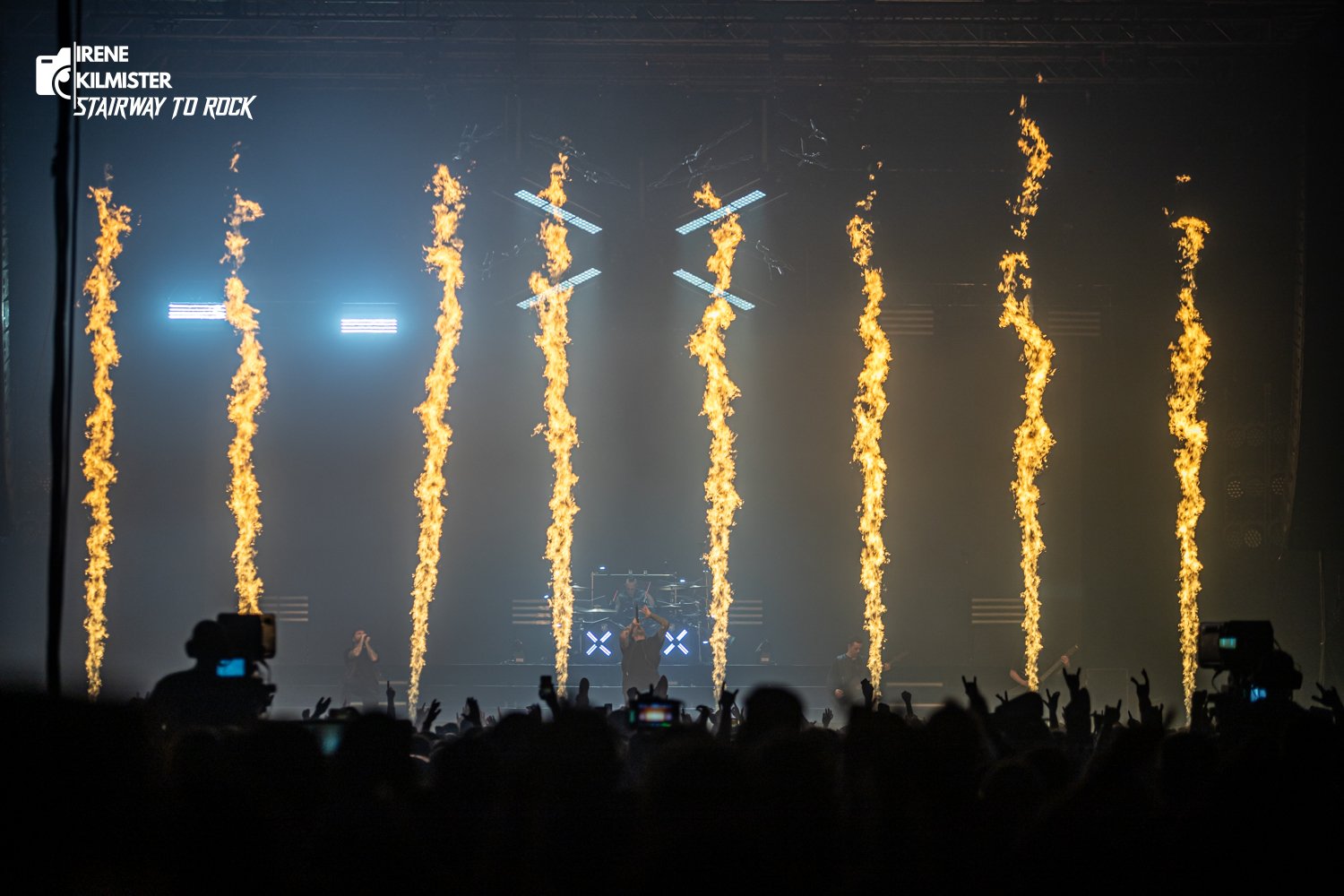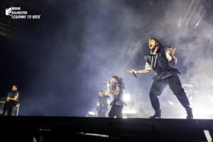 Tras un cambio de vestuario a un atuendo más fúnebre, el show siguió con su ritmo implacable de la mano de “Revery”. El Sant Jordi se inundó de palmadas al ritmo de “Hate/Love”, regresando a la caña más metalera de la mano de “Mindreader”.