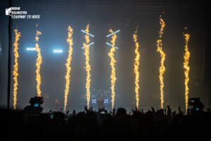 Con la sala casi a reventar y un curioso mix de Hardstyle y Metalcore sonando por las PAs, un público compuesto por una cantidad sorprendente de profesores de aerobic de los ‘80 se apiñaba impaciente hacia las primeras filas. Al griterío que le siguió al apagón de las luces le acompañó una táctica inserción de batones de luz por parte del crew a las primeras filas. La fiesta estaba lista.