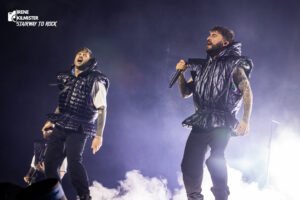 Nico y Kevin, ensotanados con su mejor cosplay de Darth Sidious, no tardaron ni un segundo en ponerlo todo patas arriba con la impía combinación de pirotecnia y pura adrenalina que fue “TANZNEID”, a la que le siguió  su particular versión de “Still Waiting” a la que acompañó una avalancha de confetti rojo.