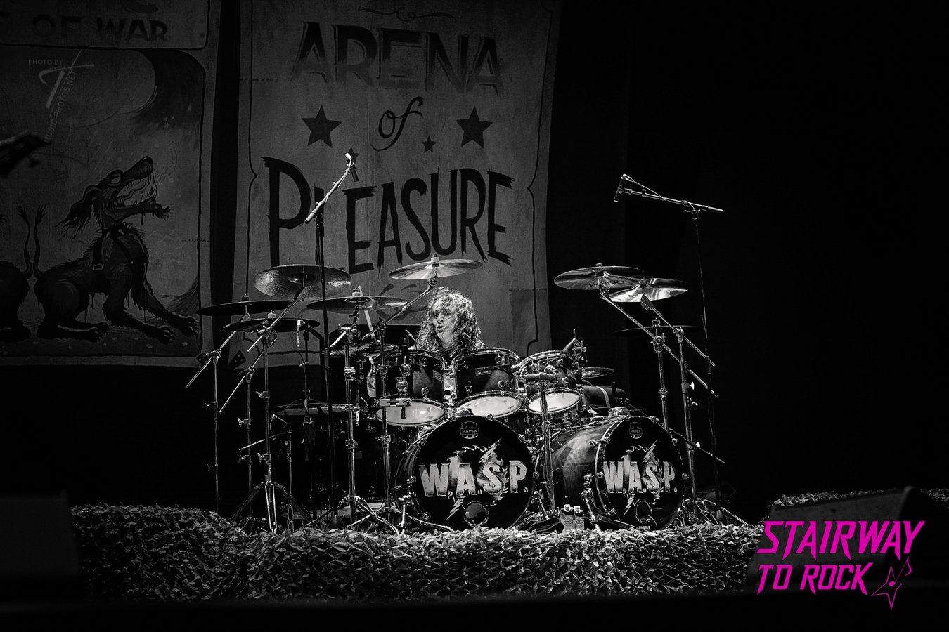 El show de W.A.S.P. fue una puesta en escena con carácter propio, cargada de símbolos visuales que no buscaban explicar nada, sino crear impacto. Desde el inicio, la banda apareció rodeada de enormes pósters al estilo de la vieja prensa sensacionalista estadounidense: titulares desproporcionados, letras en negrita, estética cruda y directa, como sacada de una pared olvidada de los años 50. Una elección estética inesperada, que funcionaba como un telón de fondo provocador para el sonido potente de los norteamericanos.