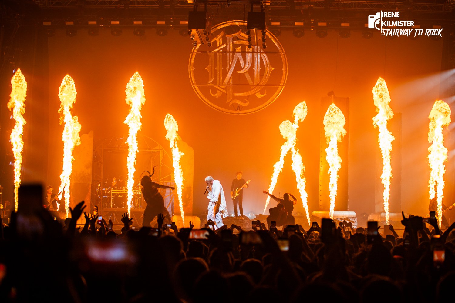 Los bailarines regresaron para acompañar el solo de batería de Ben Gordon, que de pronto pasó a estar boca abajo en una plataforma giratoria que estalló en llamas con todo el escenario, augurando el absoluto infierno que fue “Crushed”, que no dejó un solo centímetro sin incendiar ni un solo gramo de pólvora sin utilizar. El tema también trajo el momento climático de la noche , con Winston elevándose sobre una plataforma que escupía llamas por todas sus esquinas, alzándose como un demonio triunfante sobre un infierno que nunca se había sentido tanto como el paraíso.