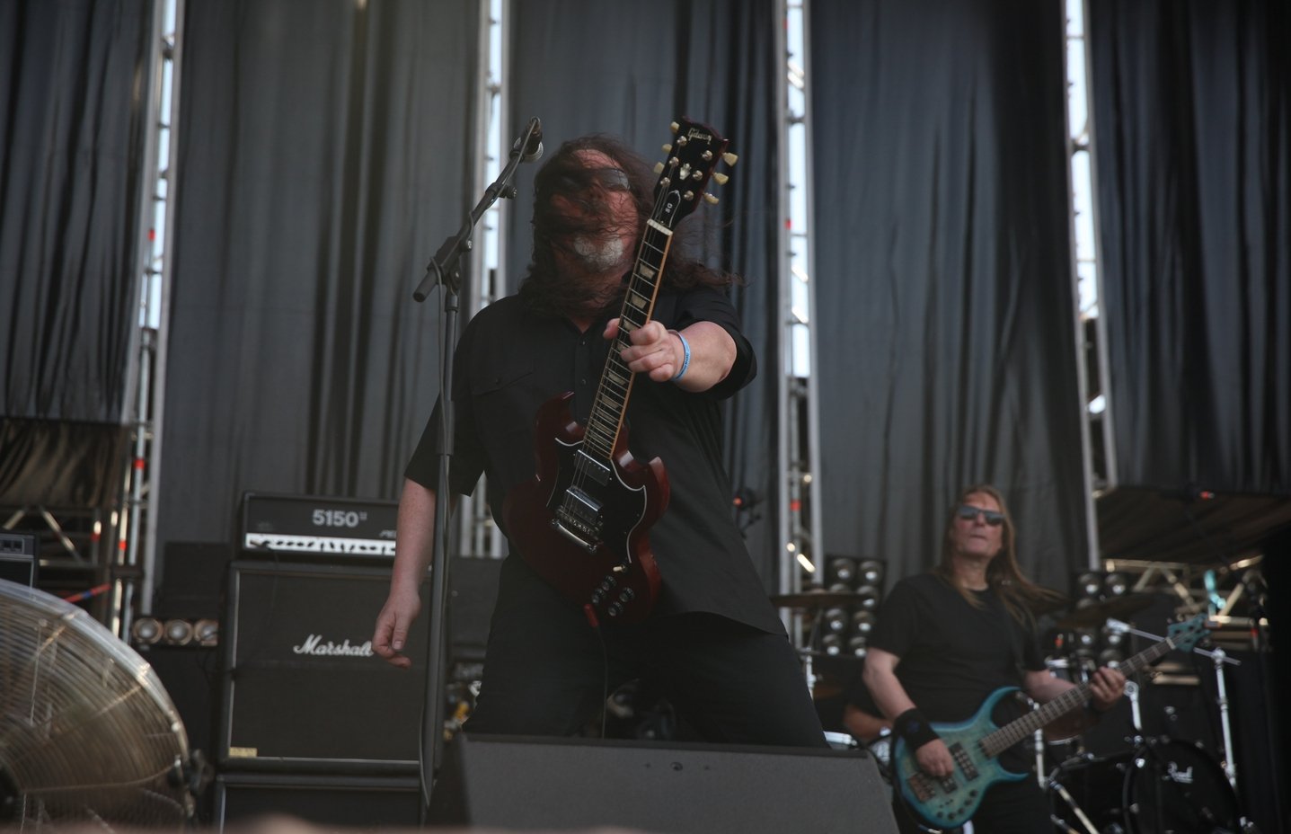 Momento muy especial e histórico el de poder ver en un festival a una de las grandes bandas de la NWOBHM. Nunca tuvieron la suerte que merecían, incluso llegando a cambiar de nombre décadas atrás, porque eso de llamarse “Satan”, ya te lleva problemas de por sí. Comandados por dos miembros de Skyclad como son Graeme English y Steve Ramsey. Guitarras dobladas en “Ascendancy” y flanqueados por dos torres Marshall que se quedaron en poco si las comparamos con lo que traerían Airbourne.