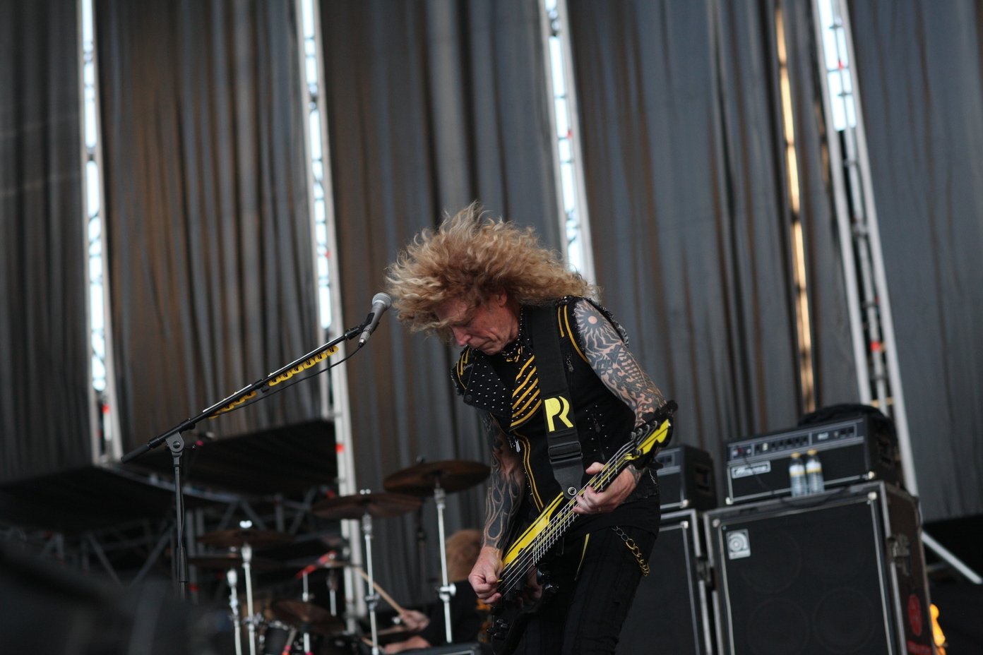 He podido ver a Stryper hasta en dos ocasiones en directo, y de verdad, que hasta ayer no puedo decir que les vi de verdad. Esos shows en festivales de una hora no dejan que las abejas católicas puedan desplegar sus alas. Y es que esta vez pudimos vivir hasta 16 temas empezando por el “Sing-Along Song”. Antes Michael Sweet había salido a escena a saludar y a repartir púas. Sonido muy deficiente, apenas pudimos percibir el “Calling on You”, muy coreada y ya con una mejora evidente en “Free” y “Divider”, mucho más nueva y especialmente metálica.