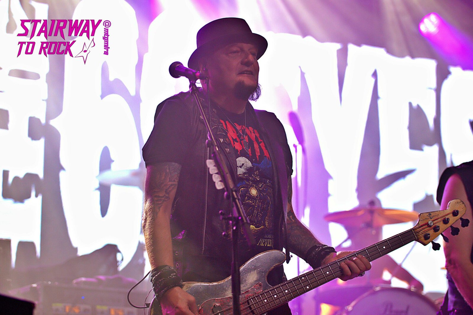 Empezó el cuarteto con 15 minutos de retraso, hecho por el cual dos temas de los previstos quedarían en el limbo y con la original introducción de la canción de “El lobo feroz”, que dio paso a que salieran los cuatro caballeros inimitables para ese “Jihad” que les puso en el mapa en los 80. Quienes no conocían a Jesper Binzer y compañía quedaron impresionados por los ropajes de directo y por el festival de bajos de Stig Pedersen, que ya en el primer tema, y armado con su bajo transparente, se encaramó en la batería de Laust. El nuevo disco Speed of Darkness estuvo bien representado con “1st, 2nd and 3rd”, pero el peso de los clásicos es absoluto y pronto optaron por recuperar el “Gil Nation”, otro temazo del No Fuel Left for the Pilgrims. Jugaron con parones y demostraron que esos coros REALES les elevan frente a muchísimas bandas.