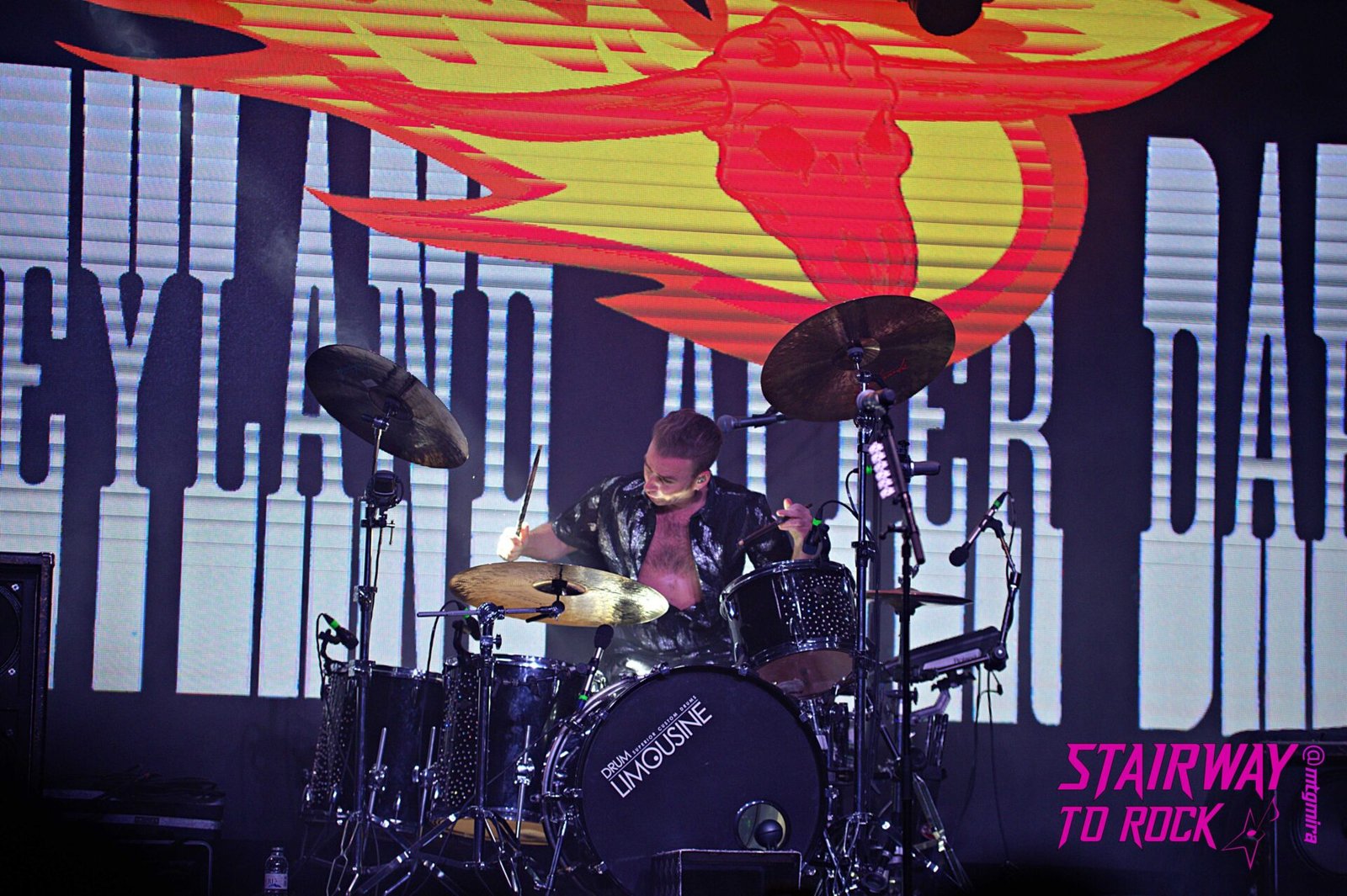Pero es que luego caía la brillantísima “Everything Glows”, con el pad electrónico de Laust y ese momento jam que desemboca en el solo del mismo. Jesper jugó con la gente con eso de: “el batería de la Rambla” e hizo cantar lo de “Este baterista mi corazón”. En momentos así alucinas con la banda y más cuando Laust canta la voz principal mientras realiza unos breaks perfectamente integrados en la canción. Sólo os diré que en Wacken hizo eso mismo pero con la batería colgada en vertical y con fuego en el escenario. Muchos no les conocen, pero esta banda danesa ha sido cabeza de cartel en Wacken… Y antes de los bises bajo de gaviotas y la maravillosa “Bad Craziness” que en los 80 llegó entrar en la MTV.