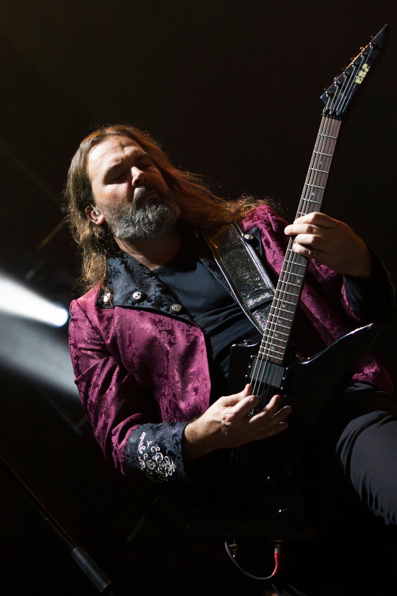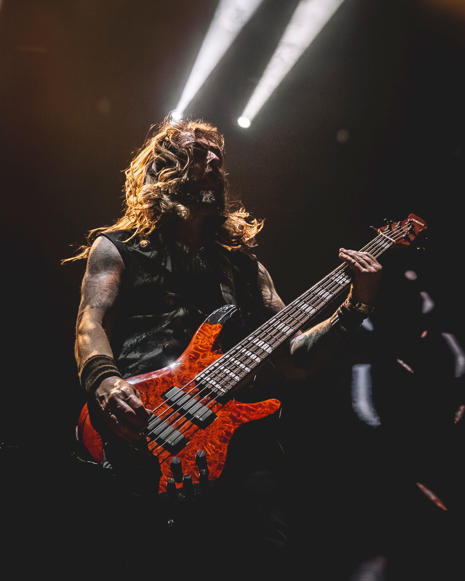 Enlazan rápidamente con “Irae Dei”, un tema poco explorado en los últimos años, y en el que volvieron a sacar petróleo de los amigos/as de El Batallón de Mordor al calor de una pirotecnia, presente en muchos momentos del concierto, que contribuyó a dar espectacularidad. Espectacular fue también oír los primeros compases de “Nostradamus”. Fue toda una concesión al pasado, al ser un tema que, hasta donde recordamos, no suele aparecer en los setlist de la banda. Aunque rememorando un poco, también pudimos escucharlo hace dos años en La Riviera, y en el entrañable concierto celebrado en el Real Teatro de Las Cortes en San Fernando, en conmemoración de su vigésimo aniversario.