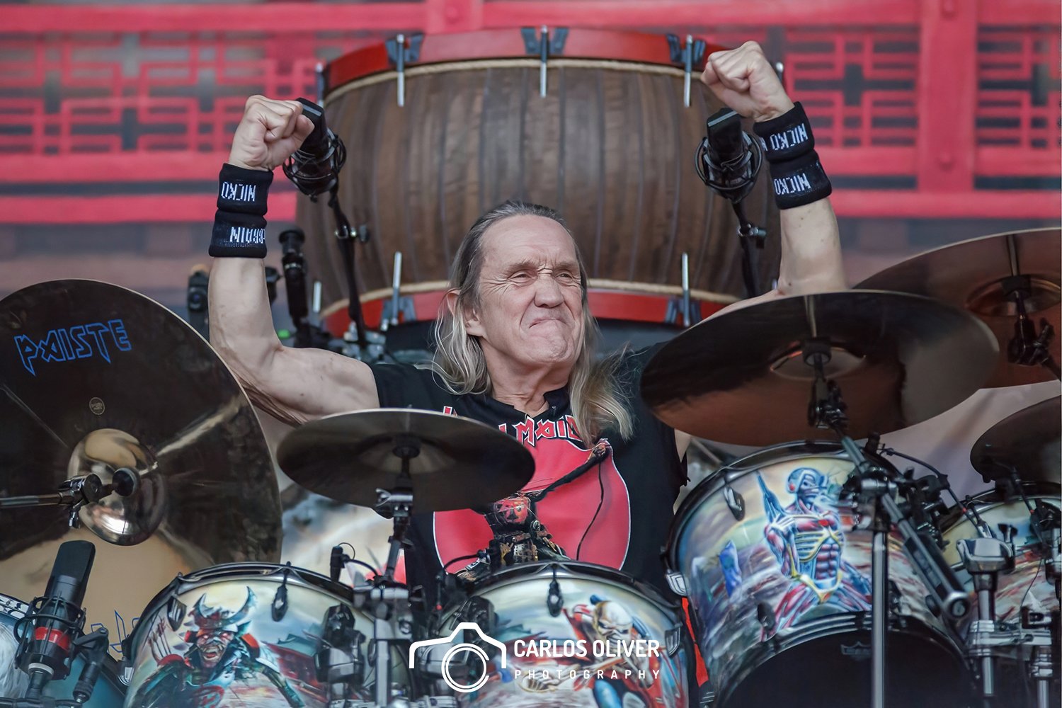 Los baterías, los grandes olvidados y relegados de la fotografía de conciertos. Difíciles de retratar cuando sólo puedes hacerles fotos frontales, más aún si se esconden tras enormes kits. Como homenaje y mérito propio, destaco esta foto del gran Nicko McBrian.