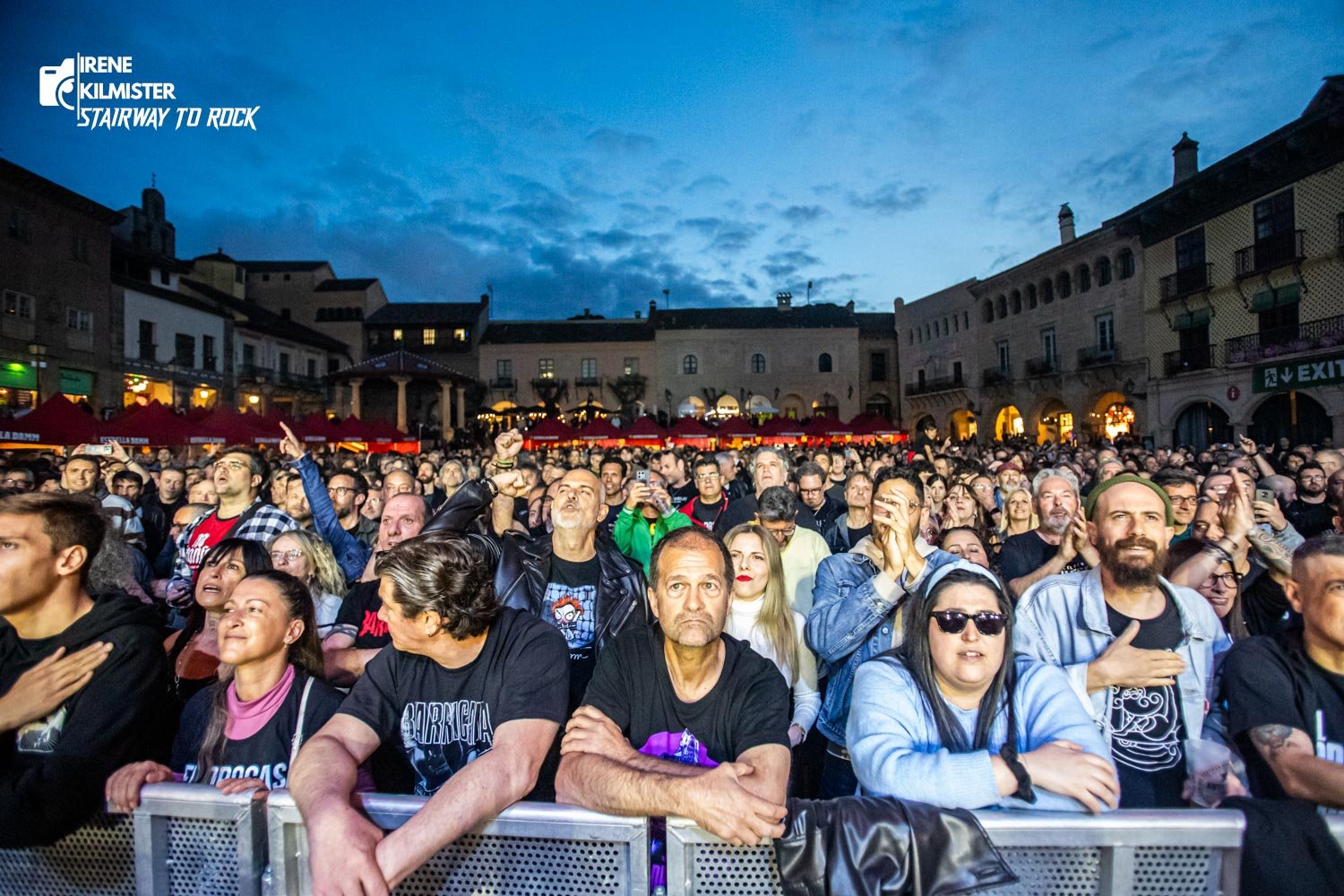 El público comenzó a entrar en calor con «Nos Queda Poco Tiempo», primer recuerdo a Txarrena, y estalló con «Problemas», de Barricada, que convirtió la Plaza Mayor en un hervidero. El ritmo trepidante del show no daba tregua: «Azulejo Frío» y «Salvaje Mirar», ambos de Azulejo Frío, mantuvieron el nivel.