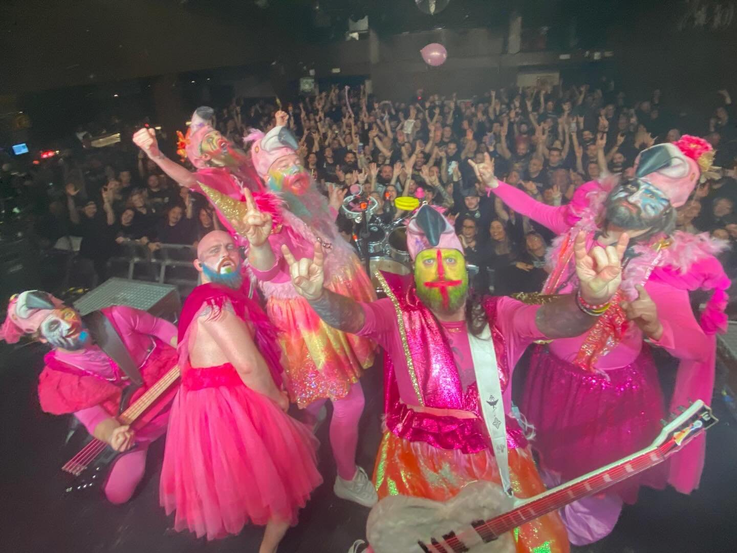 Globos rosas desparramados para la audiencia y destellos progs en algo festivo y original, salpicado por momentos muy 90eros de cónsolas de 8 Bits. Algunos coros pregrabados en “Twenty Miles an Hour” en la que juegan con tiempos muy complejos y “Kaptein Kaos” con aires funkies y mucha diversión. Esa moda de hacer sentar a toda la sala, la explotan, pero cada vez a sus fans les cuesta más por edad. Y los sonidos balcánicos de “Trinkentroll” tomaron la sala… Atención a la conga gigante en “Piña colada”, que subió hasta los lavabos de arriba, con ritmos a doble bombo, pero me quedo con “All Drinks on Me” y ese guitarra que era capaz de cantar tanto o mejor que el vocalista.