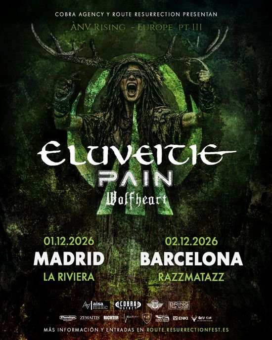 El folk metal volverá a conquistar los escenarios españoles este invierno. Eluveitie, una de las formaciones más influyentes y respetadas del metal europeo, ha confirmado su regreso a España en diciembre de 2026 dentro de la gira “ÀNV Rising – Europe Pt III”, una parada muy esperada que forma parte de la programación de Route Resurrection.