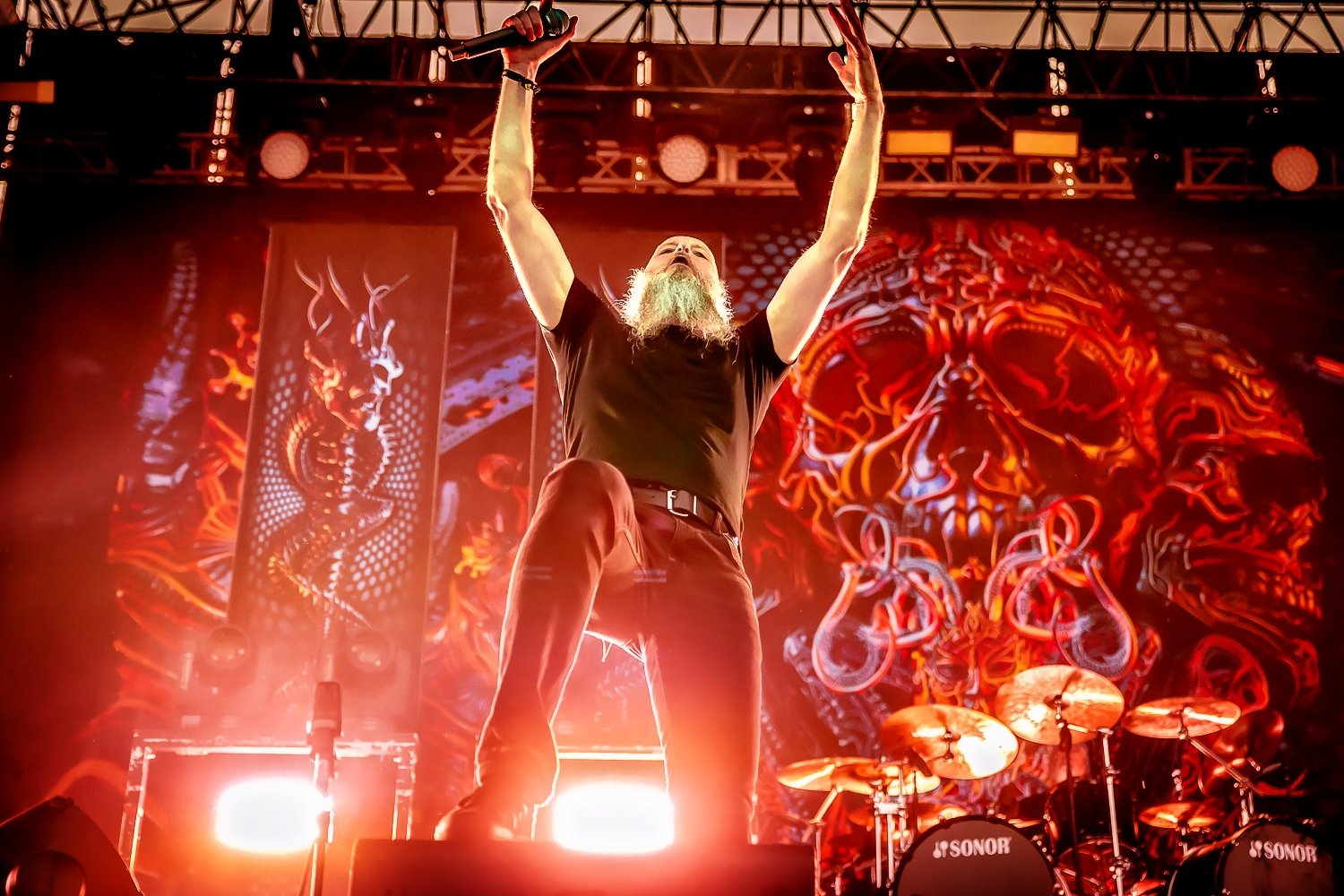 Kissin’ Dynamite pusieron la nota festiva con su hard rock festivo. Mucha energía, cero artificios. Ellos y Rotting Christ fueron de los pocos que interactuaron activamente con el público. Los griegos, además, ofrecieron posiblemente el mejor sonido de toda la jornada: compactos, intensos y con ese hermanamiento mediterráneo que nos recordaron varias veces a lo largo de su sobresaliente actuación.