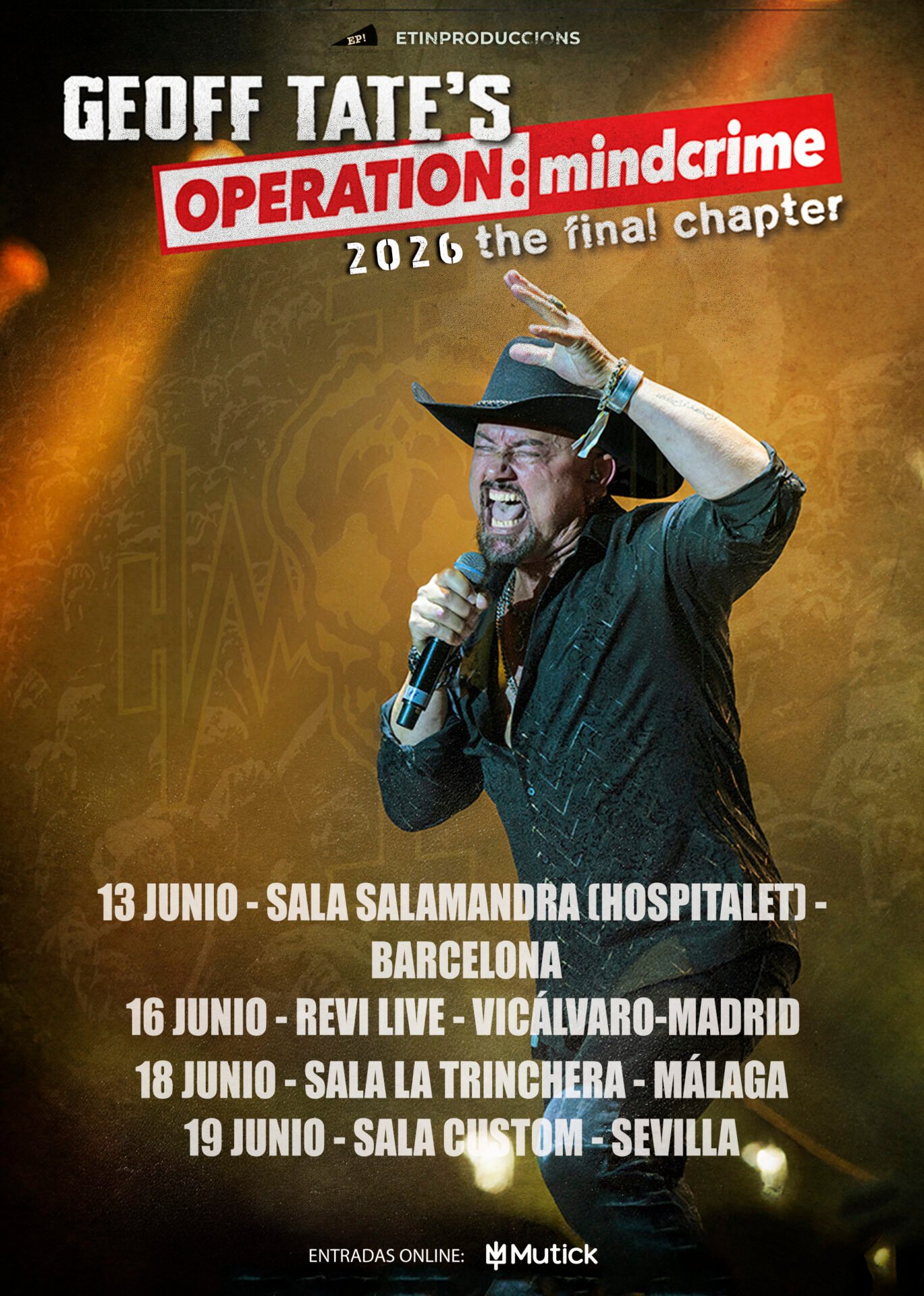 El vocalista estadounidense Geoff Tate, conocido por ser la voz histórica de Queensrÿche, volverá a España este mes de junio para presentar su espectáculo Operation: Mindcrime – The Final Chapter, una gira muy especial con la que interpretará por última vez el álbum en su totalidad.