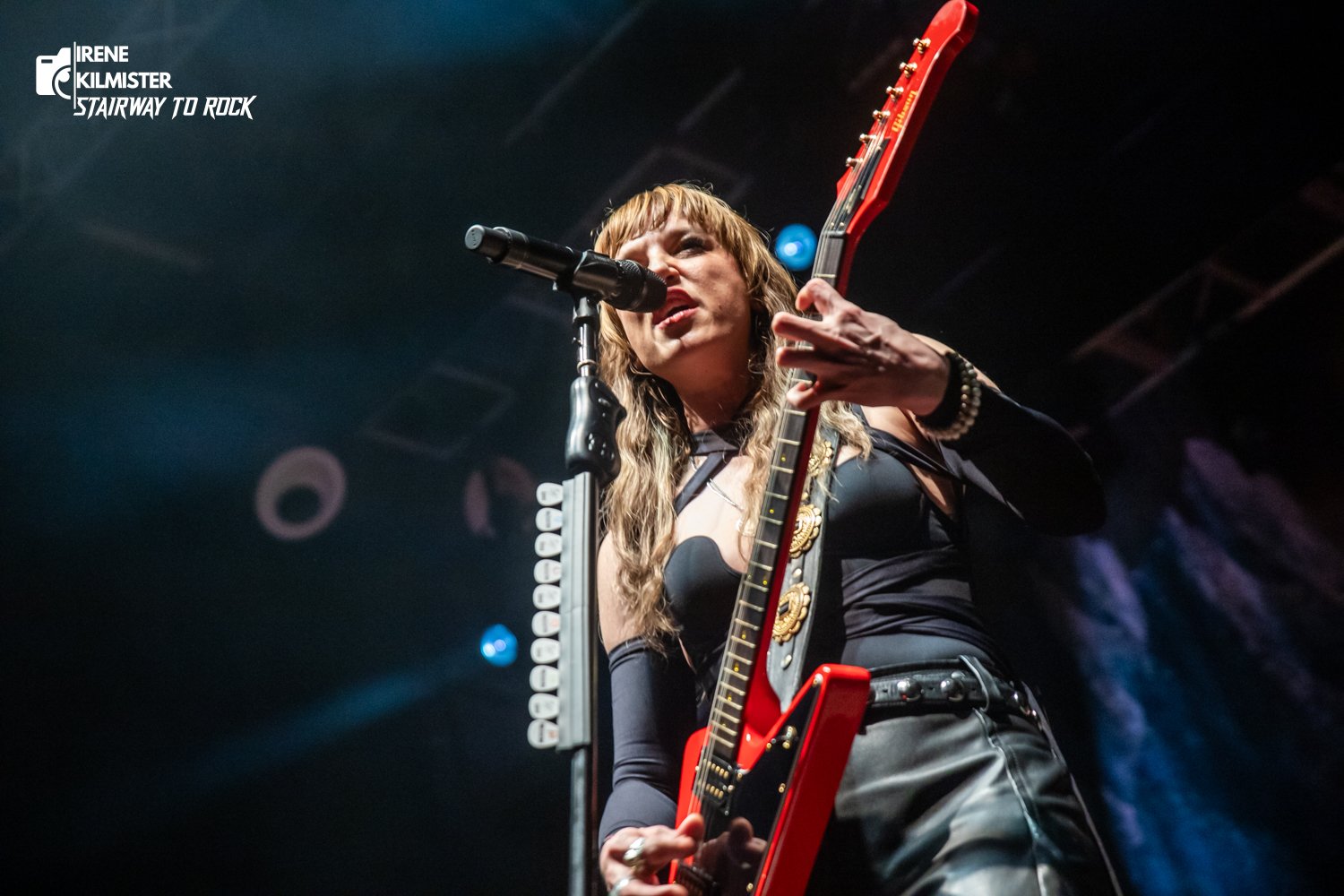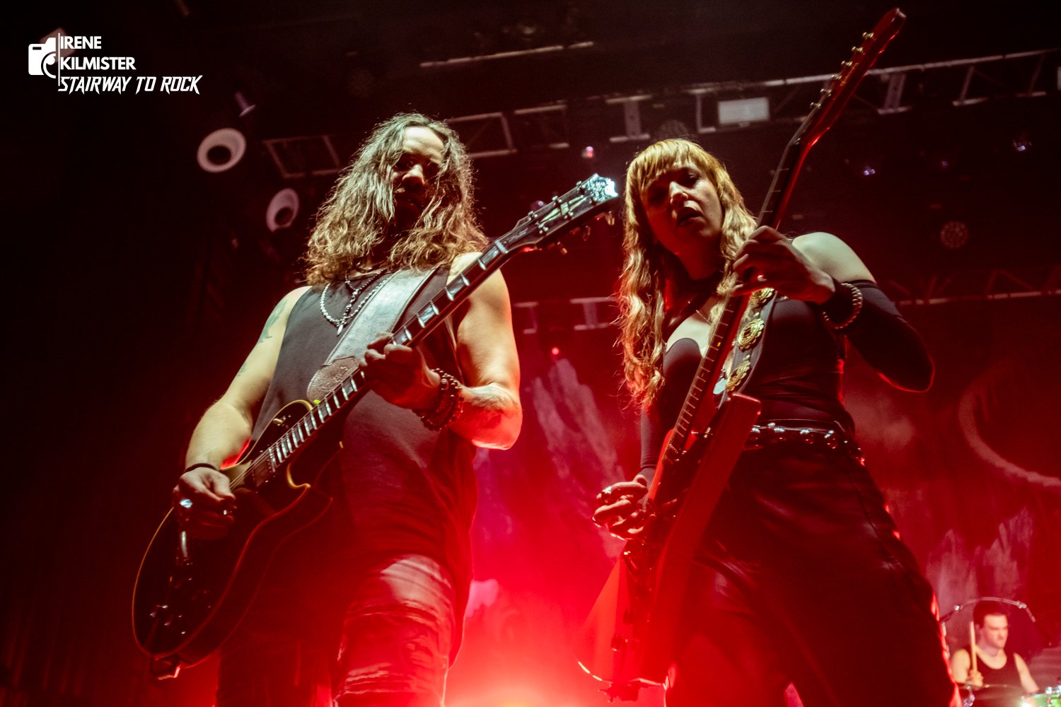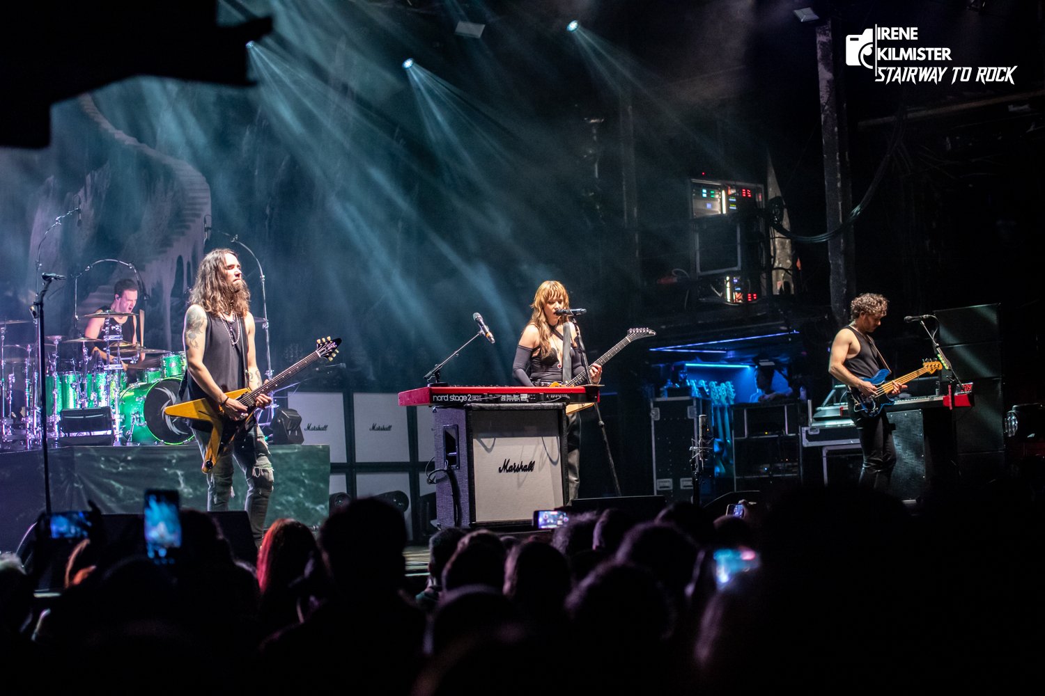 “Esto es una celebración…”, fueron las bonitas palabras antes de encarar “Darkness Always Wins”, bajo unas preciosas luces azules y con un crescendo estremecedor. Fue uno de los grandes momentos de la noche, y es que es un temazo absoluto… Le sacaron el piano a la frontwoman definitiva y empezó otra charla con bastante carga de autoayuda. Es algo que no me gusta especialmente, pero es todo positividad, como lo fue la intensa “Shiver”. “Barcelona… ¿queréis volar?”, así se nos presentó la tremenda “I Am the Fire”, en la que vimos a Lzzy y Joe Hottinger con guitarras de doble mástil.