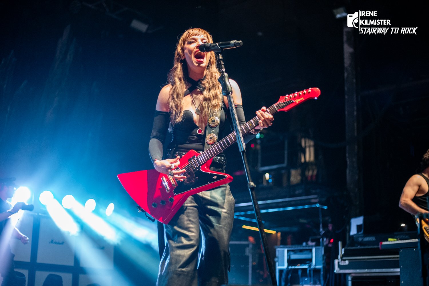 “Love Bites (so Do I)” es una de las piezas más icónicas y celebradas del grupo, por lo que imaginad cómo disfrutó la sala. Gran línea vocal con una Lzzy tocando la guitarra y despegando. Contrariamente el “WATCH OUT!” es un tema especialmente oscuro en el que la diva desgarra su garganta y rompe su voz. Ambiente oscuro y absolutamente 90ero dando un giro interesante al directo. Fue aquí cuando la lideresa empezó a interactuar con la gente y a derrochar simpatía con eso de “veo muchas caras bonitas”.