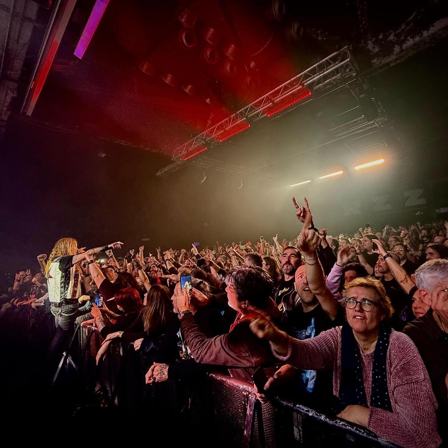 Es la primera vez, que yo recuerde, que HammerFall consiguen tocar con su gira propia en la mayor de las Razz, lo cual me parece un éxito total. No llegaron a colgar el cartel de “no hay entradas”, pero había muchísima gente y el piso de arriba abierto para ver a los templarios suecos del metal. Pocas veces bandas de power metal clásico son capaces de conseguir tocar en un emplazamiento tan especial, y eso quiere decir que su base de fans crece, aunque la media de edad de los presentes es la que es y no hay jóvenes.