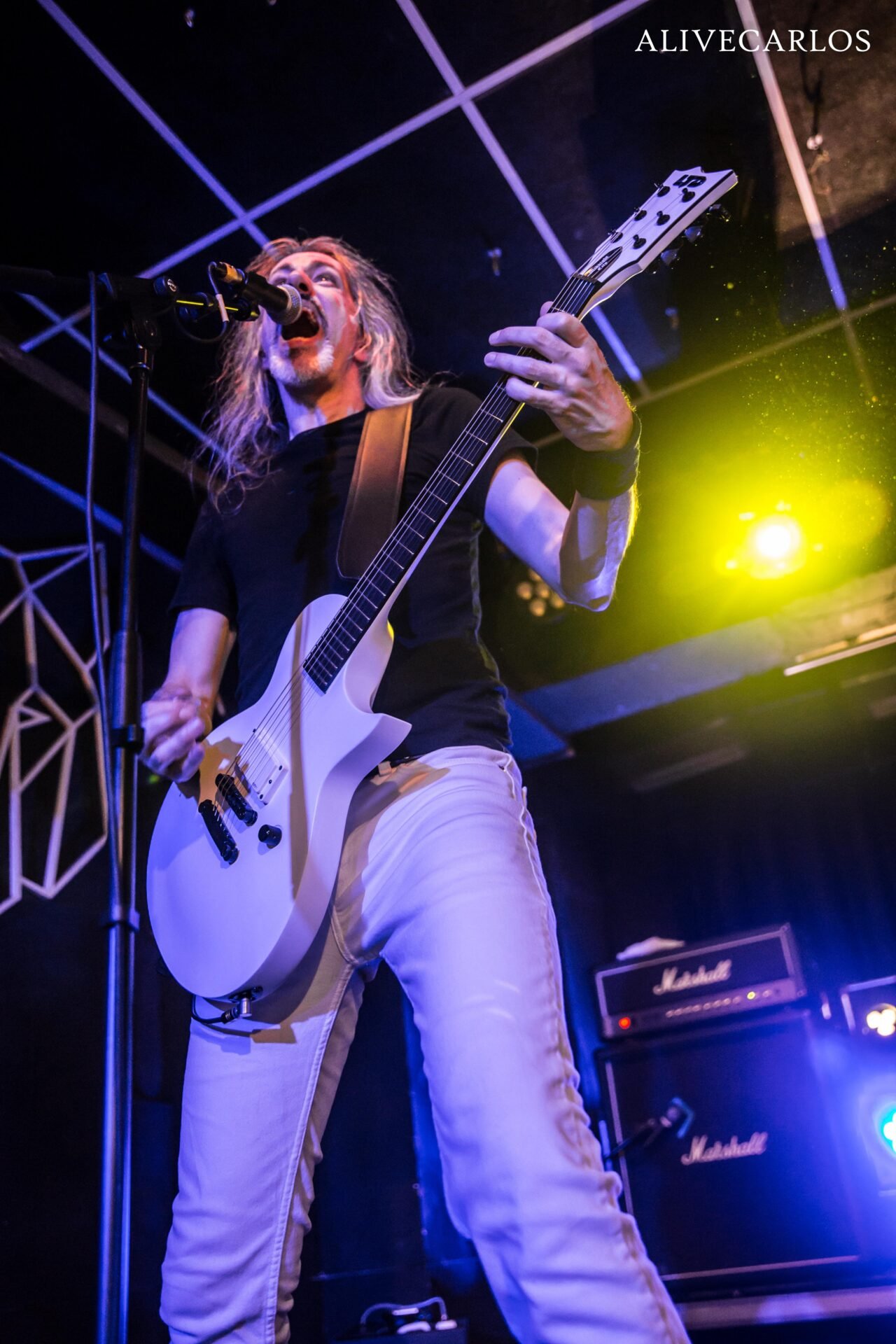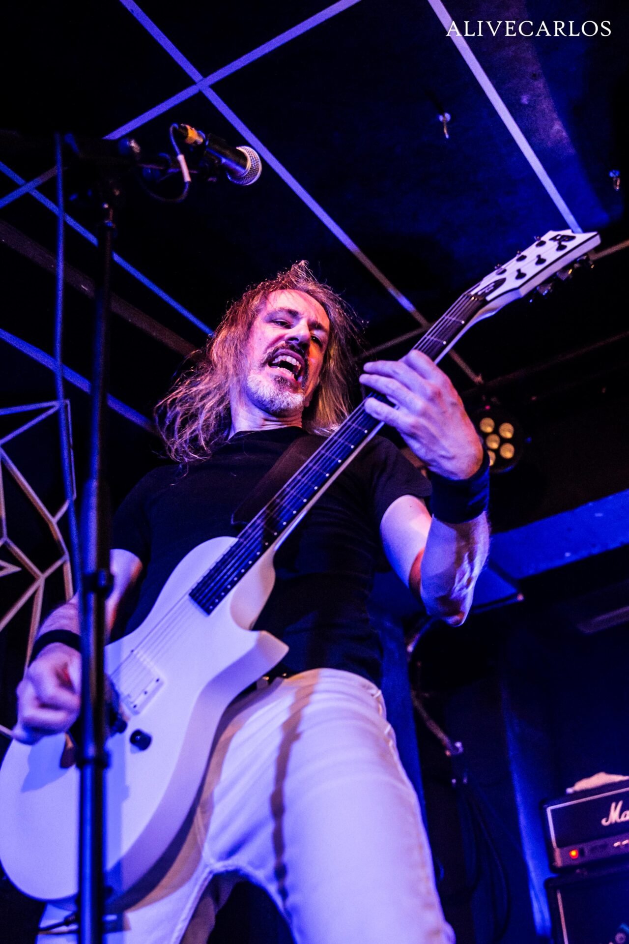 Entraron a degüello con “Flying High”, declaración de intenciones y preciosos juegos de coros. El quinteto derrochaba carisma, pero también autenticidad, dejando claro de que esto lo hacen por amor a la música. La sala se encendió desde los primeros acordes y la fiesta continuó con “This Is the Night”, con el bajo muy alto y muchos guiños a la NWOBHM. Dos temas del Motivator que tuvo muchísima presencia. Destaquemos el excelente sonido de la sala y las primeras palabras del vocalista Chris Black hacia la concurrencia, para luego volver a arrancarse con “In the Moonlight”.