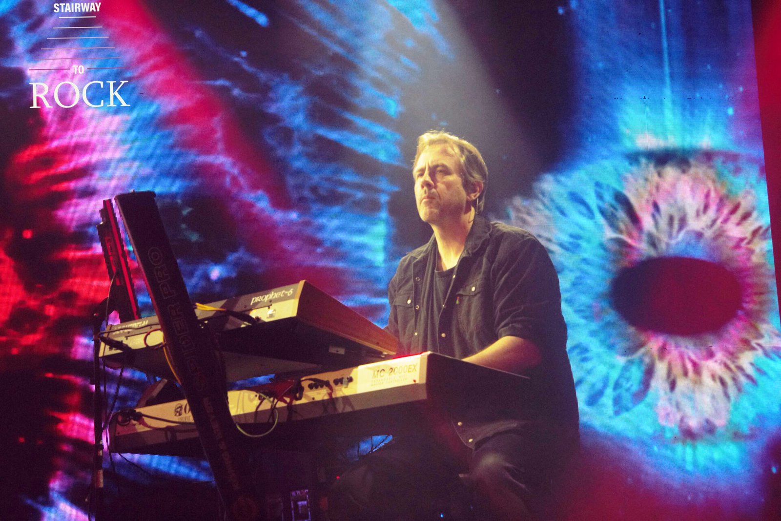 De modo que unas proyecciones de tintes hipnóticos serían las elegidas para ambientar “Dominion”, que arrancaba de forma relajada, dándonos la oportunidad de disfrutar de la faceta más sofisticada y elegante del quinteto para posteriormente conducirnos sobre unos trepidantes increscendos. Pero, sin duda, el gran protagonista de esta primera incursión en el material de su último lanzamiento fue Neil Durant que alternó la elegancia de los sonidos del piano con la vertiente más vanguardista que aportaron los sintetizadores.