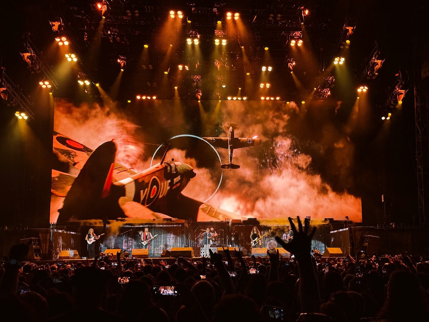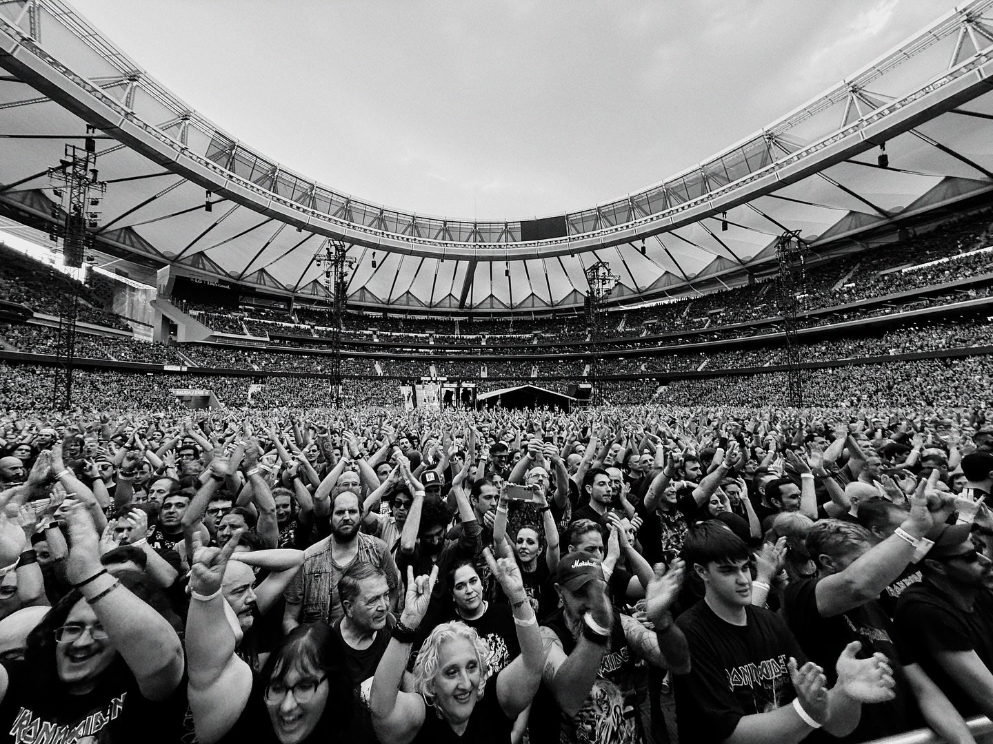 Ahora bien, no todo fue perfecto. El sonido, especialmente en los primeros temas, dejó bastante que desear. Como fan de Maiden de toda la vida —alguien que se sabe de memoria cada tema— hubo momentos en los que la reverberación era tal que me costaba situarme dentro de la canción. Desde la pista decían que la cosa mejoraba, pero desde nuestra posición era complicado. Curiosamente, con el mismo equipo, en Barcelona, en 2023, sonaron impecables. Misterios de la acústica.