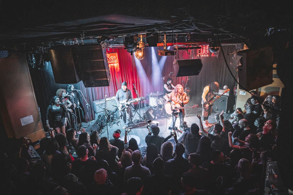 Lejos de bajarle revoluciones al asunto, la banda siguió encadenando temas sin apenas respiro. Seguimos disfrutando de coristas de lujo en “Fénix”, que desató un clamoroso aplauso del respetable tan pronto fue presentada. Jesús acompañando con guitarra española, Rami tomando el relevo de las maracas, José y Andrés dándolo todo…y un cierre mágico únicamente con las coristas y con Jesús fuera de micro despidiendo el tema con su voz desnuda, con ese deje bluesero flotando por la sala. Un gesto pequeño, pero lleno de intención. Orgánico, directo al pecho, inmenso.