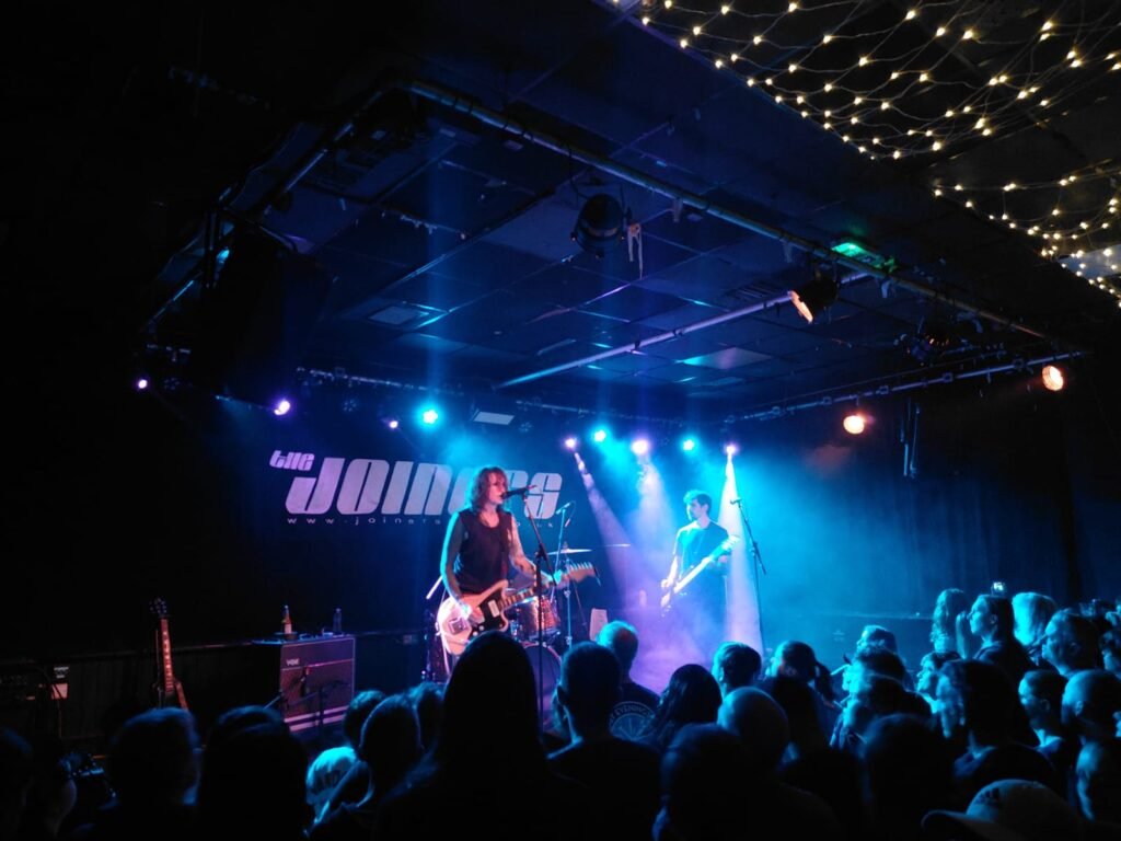Volviendo a Southampton, el pasado 31 de marzo a las 19h abría las puertas el mítico Pub inglés The Joiners Arms. Con capacidad para 200 personas, este pub lleva más de 50 años organizando eventos musicales y sus paredes decoradas con carteles de conciertos anteriores transmiten historia viva del Rock. Destaca un cartel de 2001 donde se promocionan unos incipientes Coldplay por 6 libras, otro del 1994 donde por 4 libras se podría haber asistido a la primera gira de unos desconocidos Oasis o una gira en el remoto 1991 donde por 2,5 libras se podría disfrutar de unos Green Day sin aún su “Basket Case”.