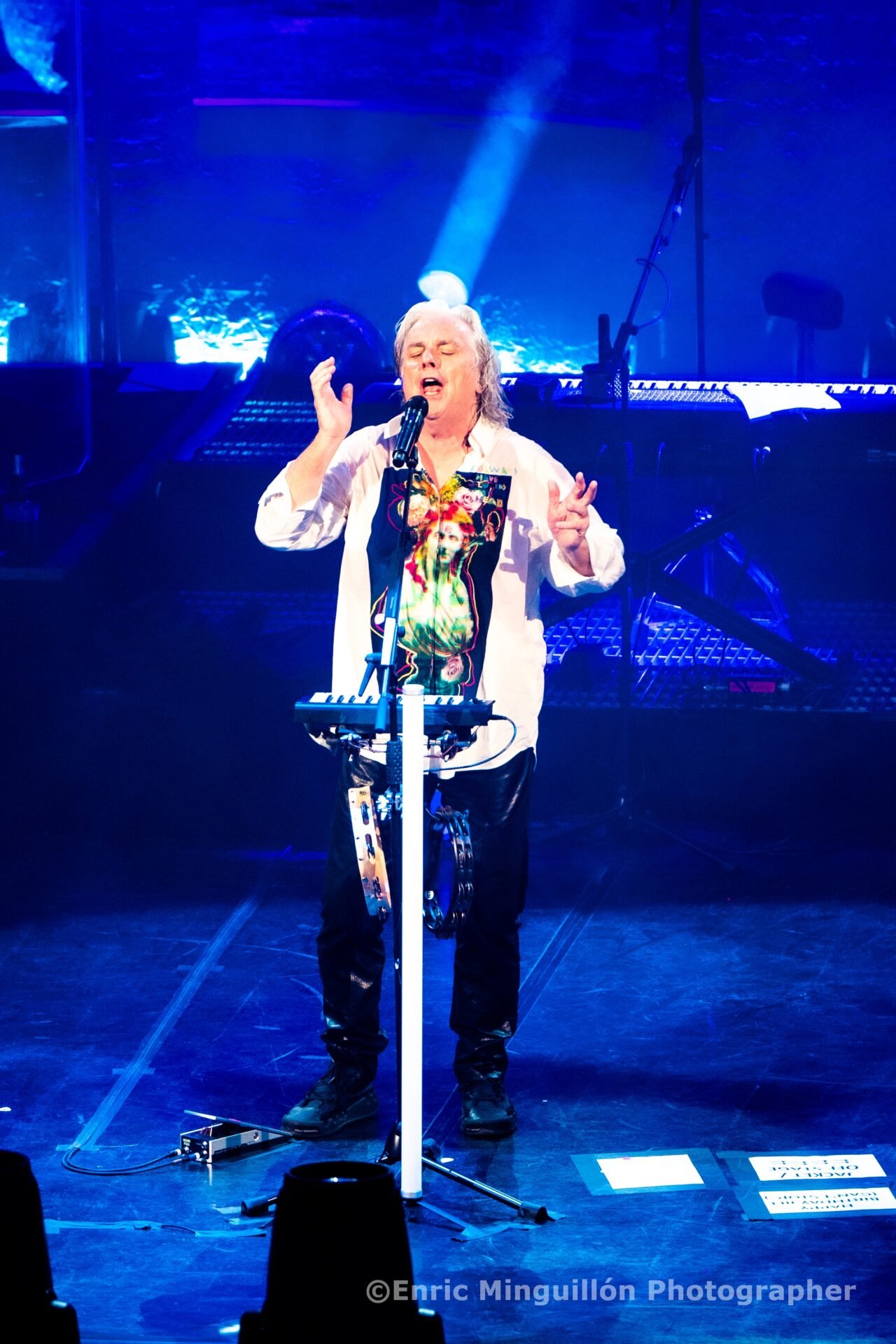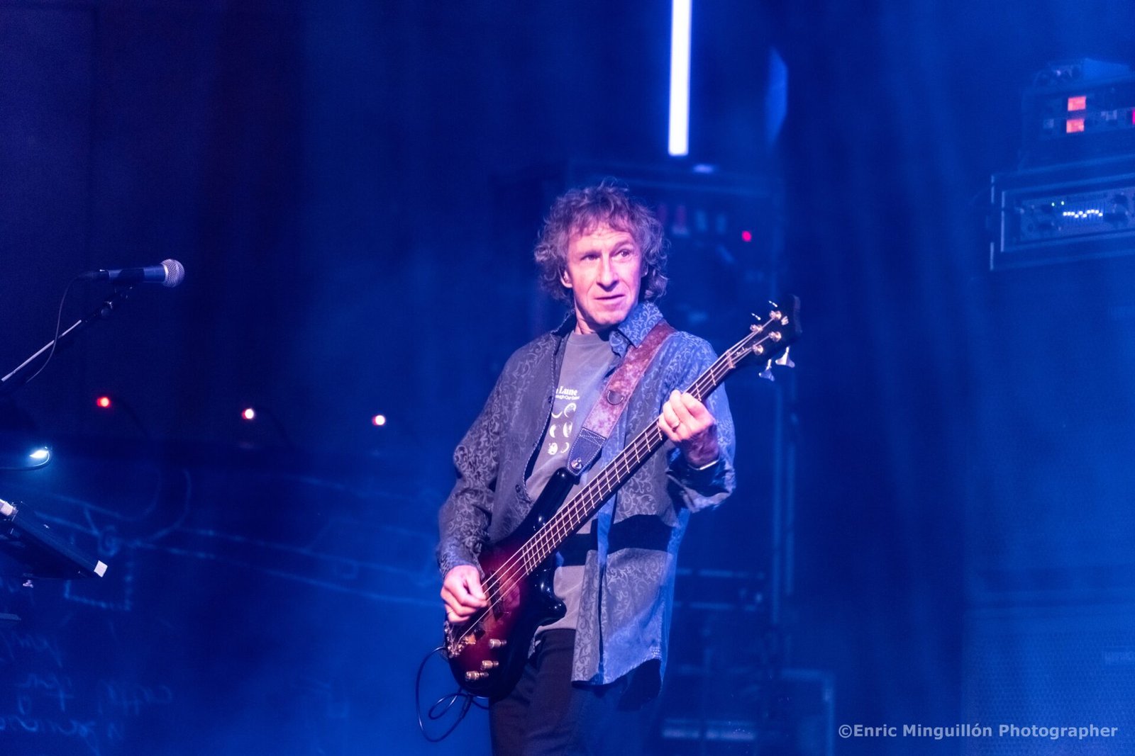 Ian Mosley es un jefazo tras las mamparas que separaban su batería y dejó su clase e impronta en “Fantastic Place”, para después un juguetón Hogarth presentara “The only Unforgivable Thing”. Se fue calzando guitarras y tenía el espacio que quedaba entre batería y teclado, en el centro, para tocar su teclado central y cantar. Eso dio mucha movilidad al concierto. La delicada y evocadora de infancia “Marbles II” hizo acto de presencia con Hogarth a los teclados o jugando con la pandereta. Luego el momento más reposado de “Ocean Cloud”, con un Pete Trewavas sonriente y delicioso en su instrumento.