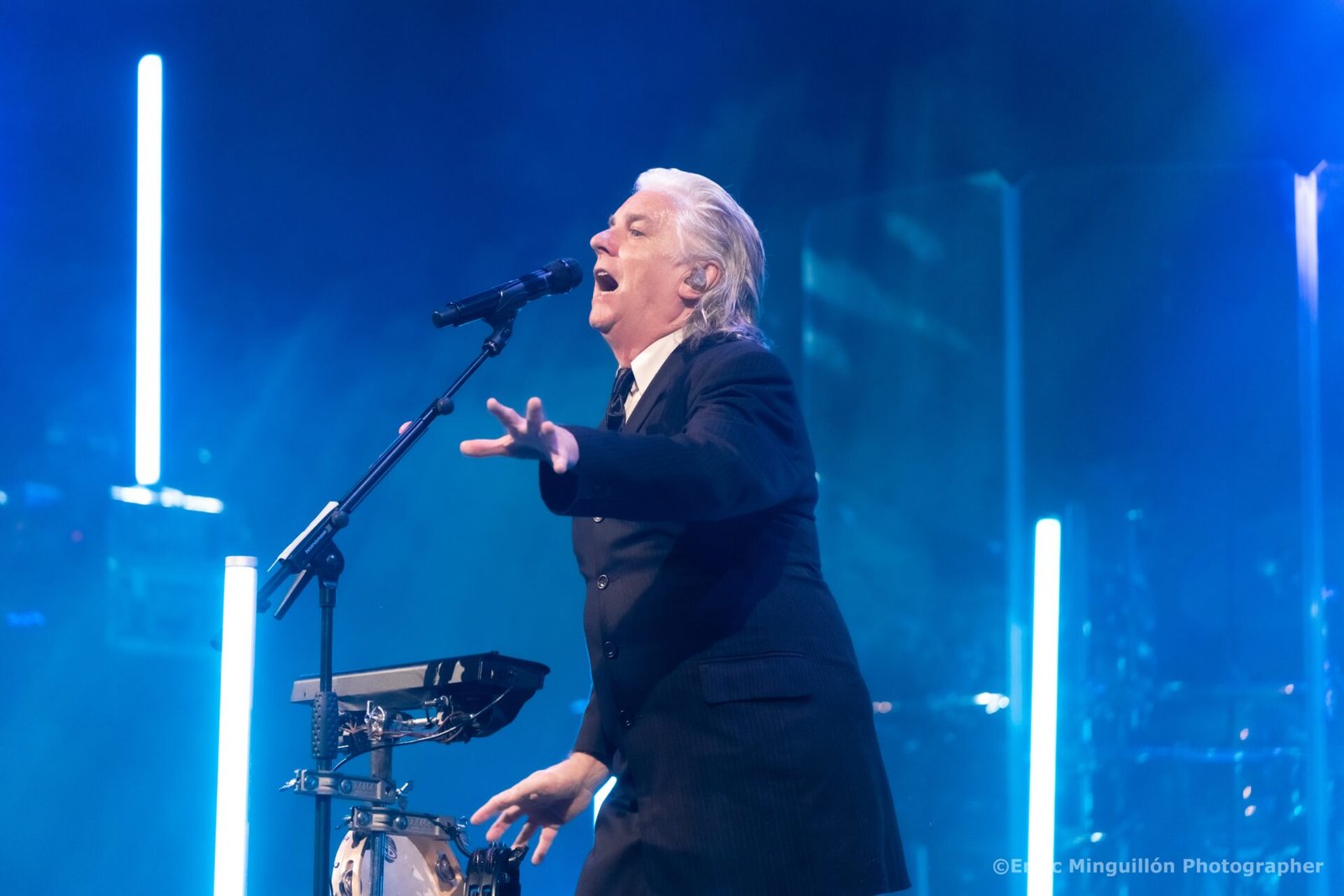 Y sí, preferieron hacer el mismo repertorio de Montreal. Tocaron todo el Marbles y luego un par de temas extra en los bises. Fue un concierto de los de manual, con una banda gozando de un sonido perfecto y con una puesta en escena sobria, con un juego de luces precioso y 15 espárragos de luz repartidos por la escena. El quinteto salió al ritmo de “The Invisible Man” con un Steve Hogarth que apareció después, con un abrigo, gafas y sin teñir su pelo de negro. La verdad es que las canas le sientan muy bien. El grupo funcionó como un reloj y la voz del vocalista fue claramente de más a mucho más.