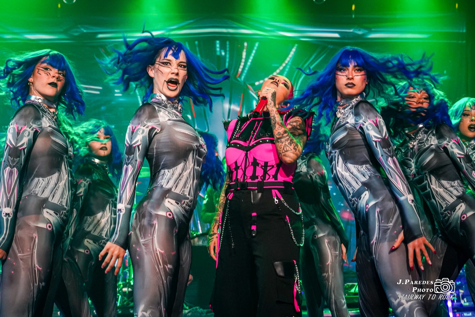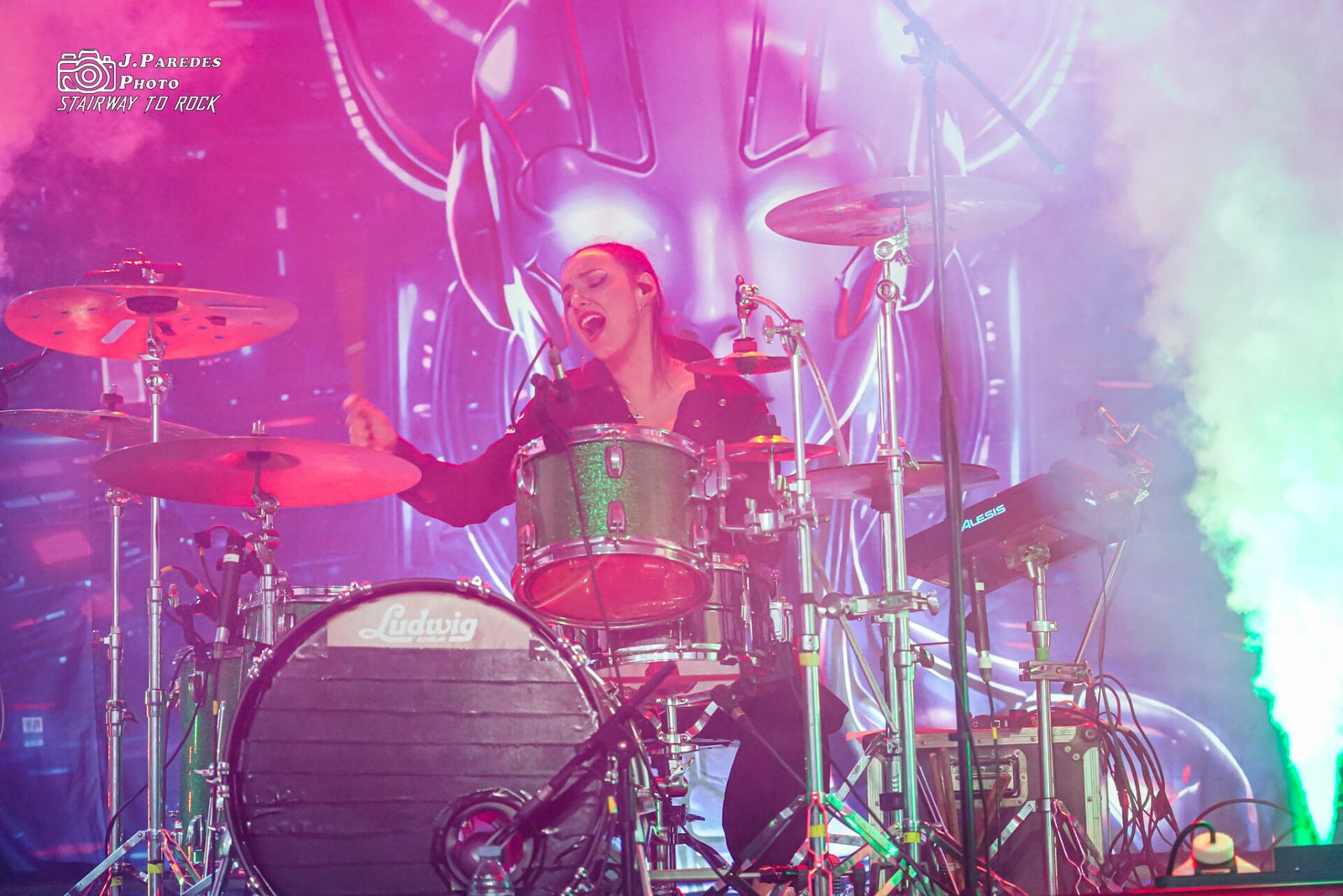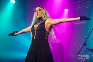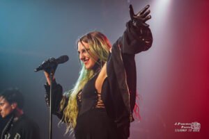 Kenzy tomó entonces entre ovaciones su pseudo-Flying V fucsia y negra y dio rienda suelta a su lado más hardrockero para presentar «Del revés». Tras finalizar, ella misma anticipó que ahora “tocaba temazo” y se cayó la sala con «Hocus Pocus», que tocaron arropados por ocho de las bailarinas, ahora desenmascaradas y de pelo azulado a lo Alissa White-Gluz. Vino a continuación la otra sorpresa respecto de su anterior concierto de presentación en tierras catalanas, «Saturno», con buena acogida de los asistentes.