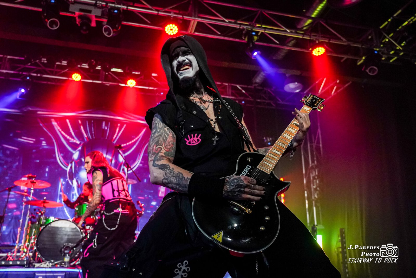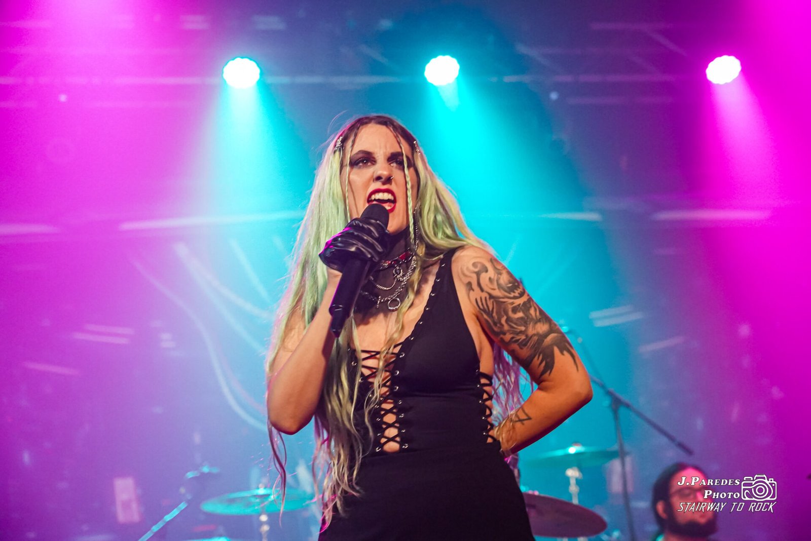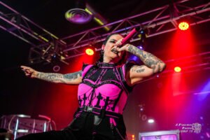 Era indisimulable que Clau Violette no estaba bien, y ella misma reconoció que el día anterior estaba todavía enferma. Fue una verdadera lástima que no pudiéramos disfrutar en su plenitud de una de las voces más versátiles que ha dado el metalcore, pero hizo gala de entereza y sacó adelante la actuación con nota. Mención especial merece Umbra Hatzler, bajista recientemente incorporado al grupo, más allá de su buena presencia en las tablas o de su impecable melena, por cómo se echó la actuación a las espaldas y apoyó en los growls a su compañera, paliando así este hándicap con el que se nos presentaban los barceloneses.
