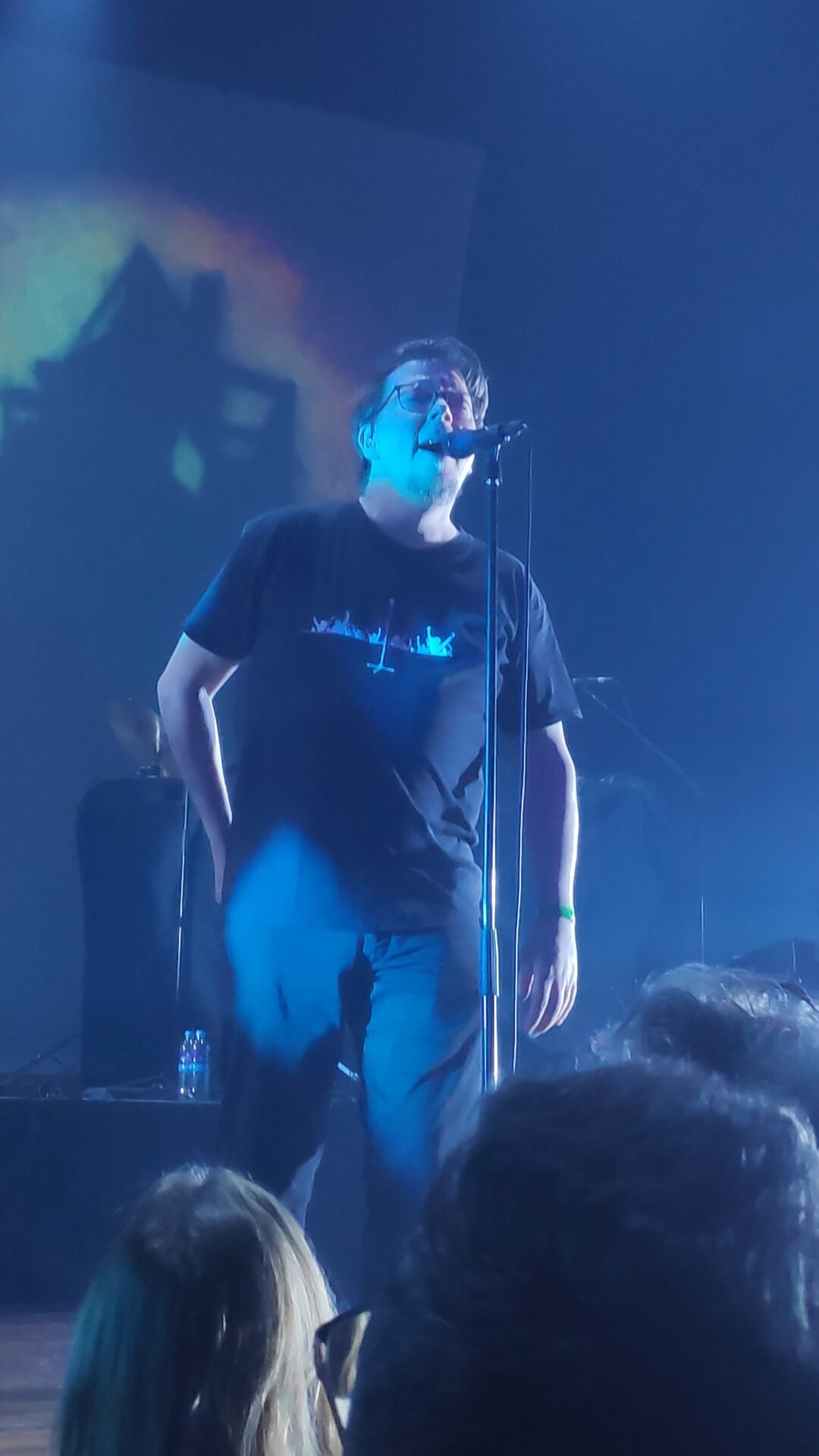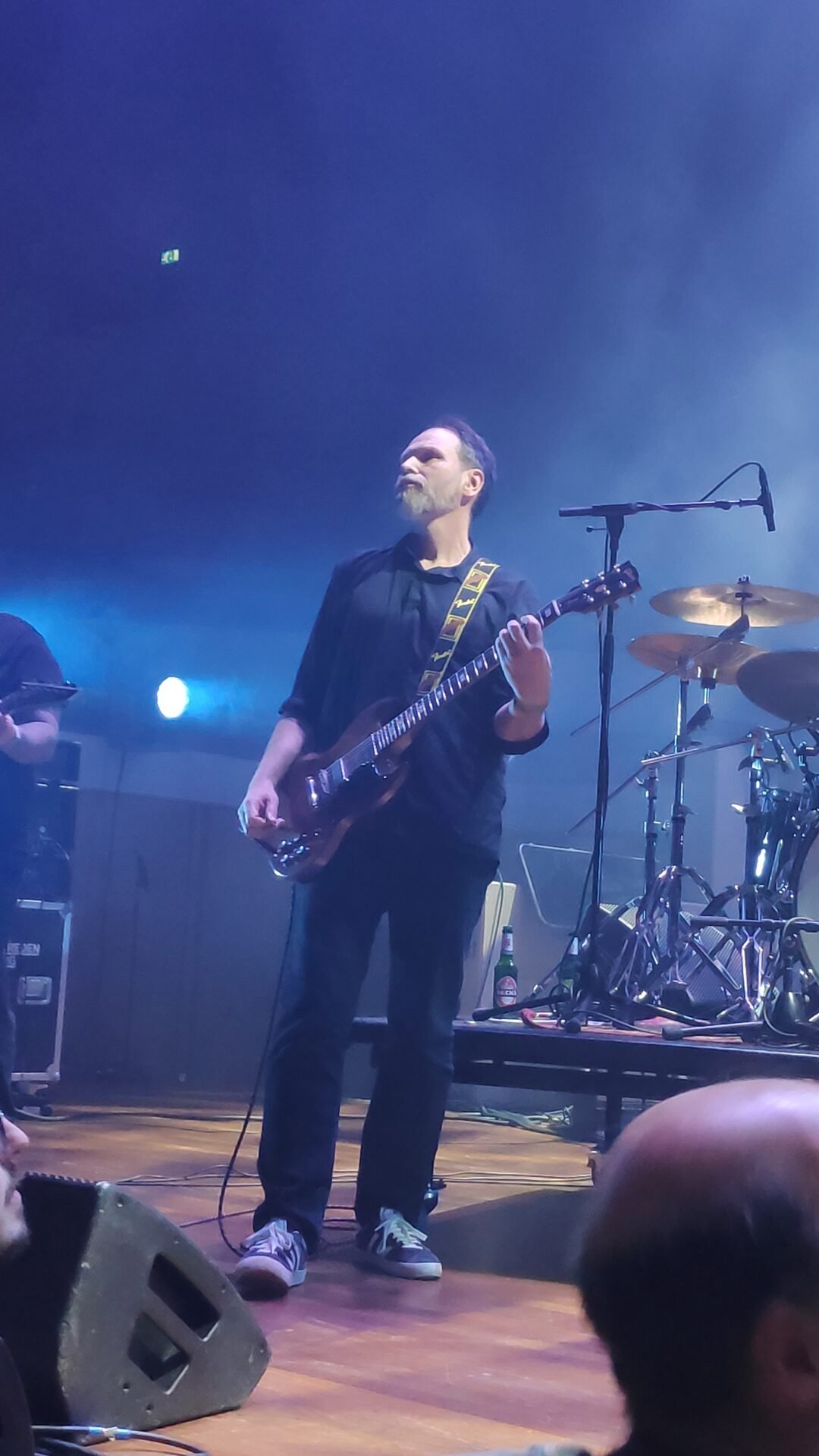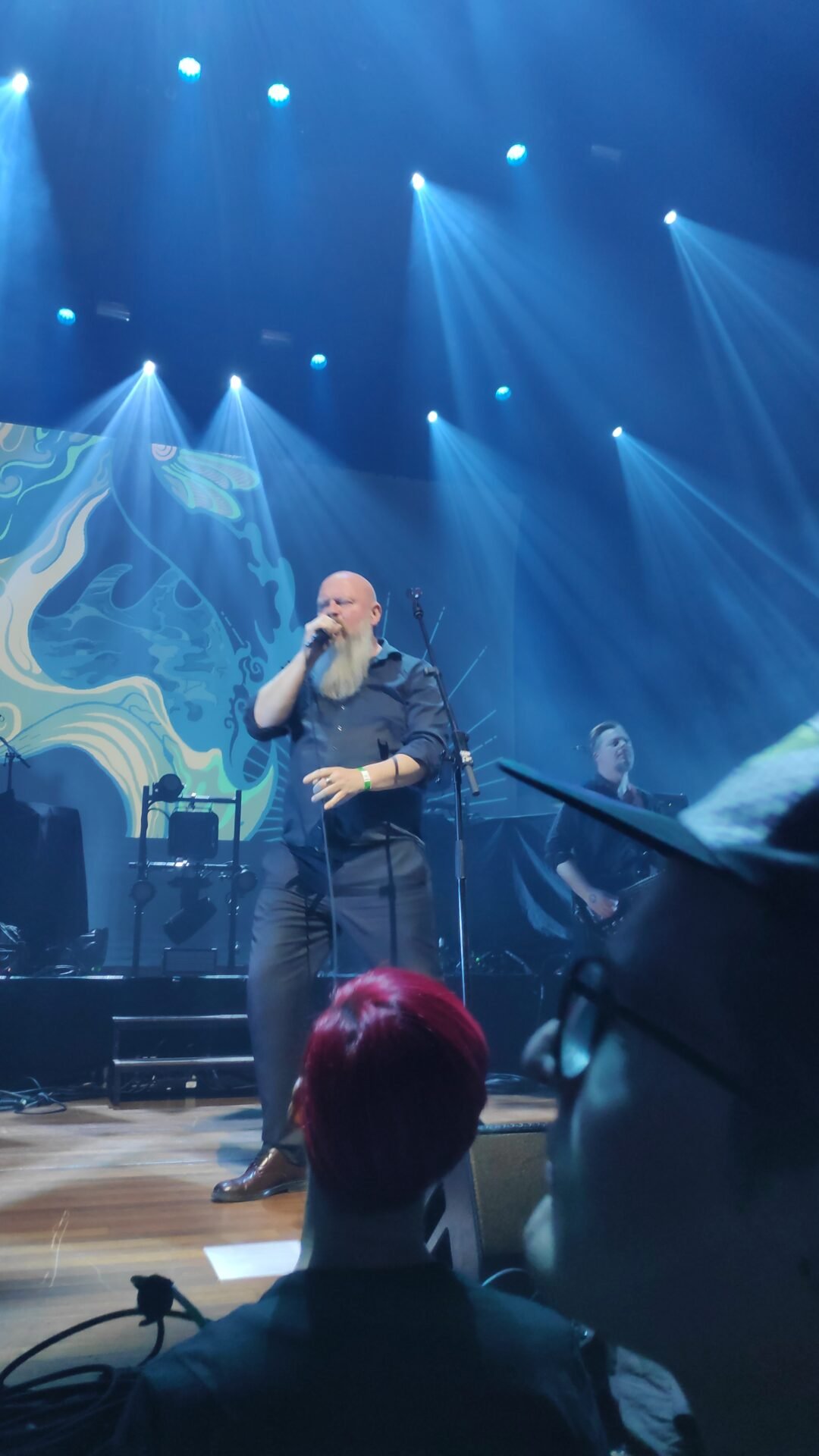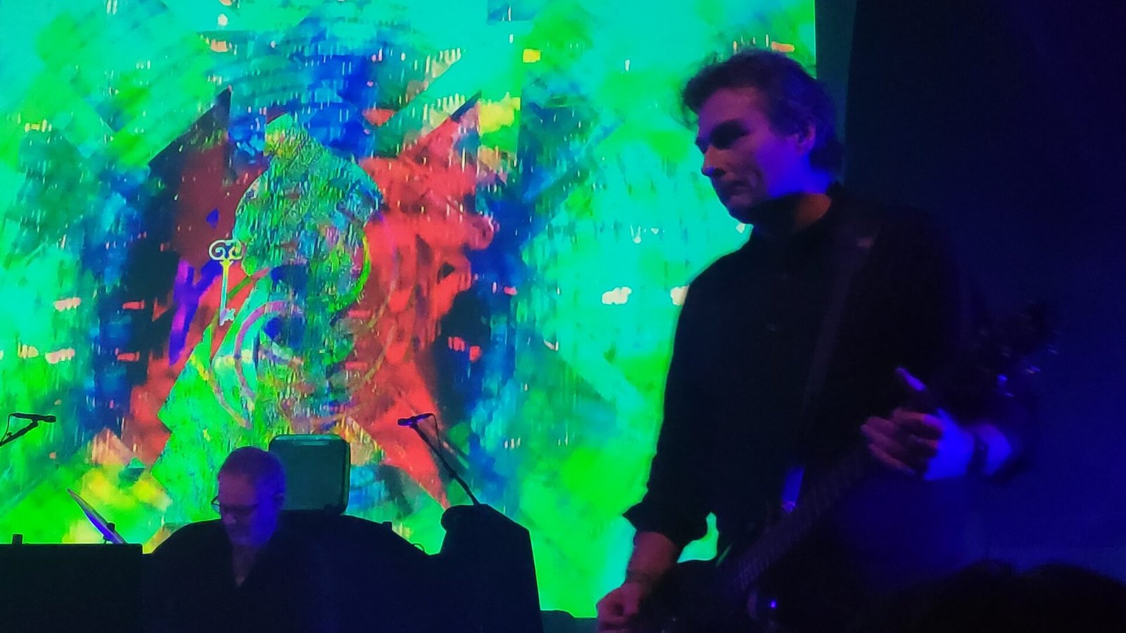 Con cierta amargura pero también con un ápice cómico, Jan-Henrik nos contó que estuvieron a punto de cancelar el concierto no una, sino dos veces. La primera fue porque, por si no nos dimos cuenta, el bajista Kristian Torp se había quedado en Oslo. Pero, para sorpresa de todos, le hizo una videollamada y pudimos escucharle saludarnos. Kristian tuvo tiempo de grabar la pista de bajo para que la pudieran usar durante el concierto.