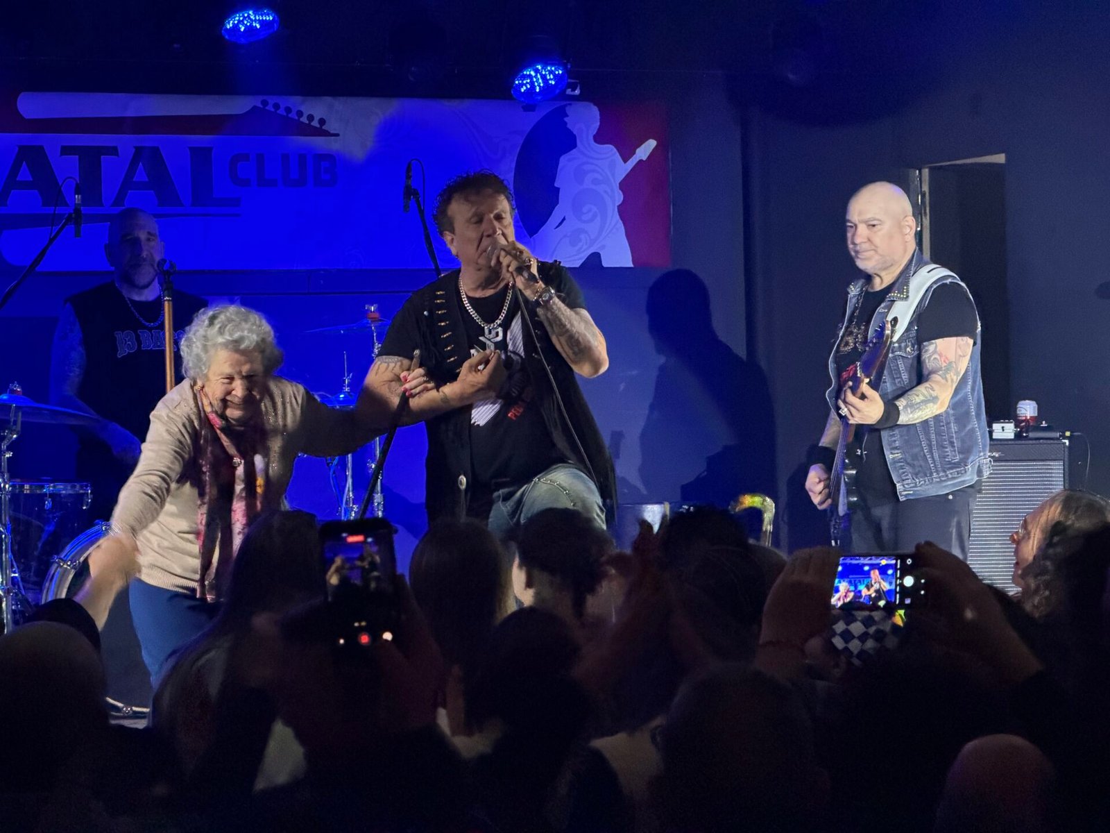 Después de «Prepárate» llegó el momento de las presentaciones, y de nuevo volvieron a demostrar carisma. Sonó el «Ace of Spades» cuando presentaron a Montesinos, y luego vino uno de los momentazos de la noche. Fortu hizo salir al escenario a su madre, la Mari, de 92 años. El público se volcó con este momento, y ella se mostró encantadísima saludando a todo el mundo. Fue un detalle maravilloso. Luego vino la presentación de Mirat, y él cogió sus baquetas e hizo un solo en una escalera plegable mientras Fortu ocupaba su lugar en la batería.
