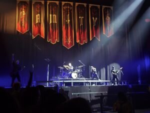 La intensidad continuó con «Dark Days», «Idols and Anchors» —con Winston entre el público—, «Chronos» y «Darker Still», ambas acompañadas de un trío de cuerdas que elevó la atmósfera a niveles épicos y nos dio a reflexionar que en el metal todo tiene cabida. «Bottom Feeder» cerró el set principal antes de un encore memorable: solo de batería, «Crushed» con llamas por todas partes y «Wild Eyes» en el B-stage, dejando al público completamente exhausto pero extasiado.