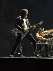 El primer golpe de la noche llegó con «Prey», marcando el segundo asalto: la banda entregó toda su energía y el público respondió con igual intensidad. Con «Glitch», Winston interpretó los terrores nocturnos atado a cadenas, acompañado de bailarines que representaban la oscuridad, hasta lograr la victoria simbólica sobre ella. La jornada siguió incendiándose con «Sacred» y «Vice Grip», mientras Winston mostraba su lado más desenfadado con «Boneyards», acompañado de chispas que salían de la plataforma y un «The Void» interpretado con un micrófono lleno de pinchos.