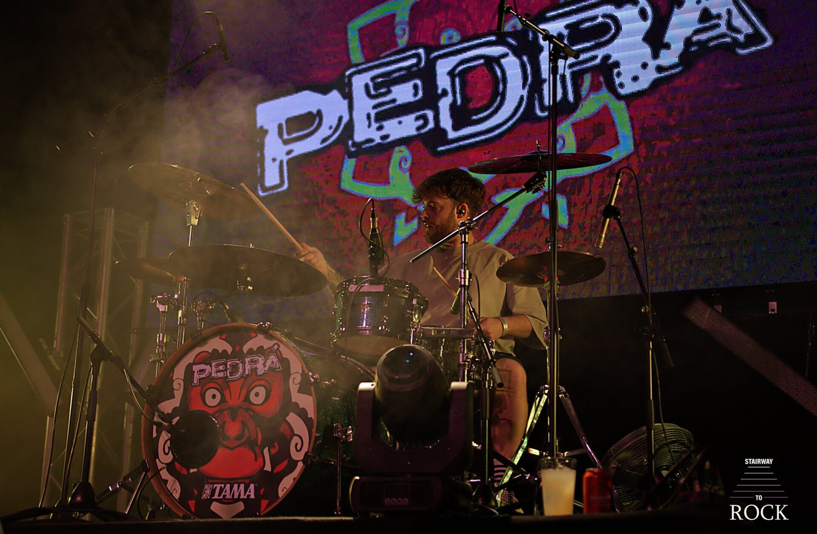 El inicio fue toda una declaración de intenciones, y es que el show de los placentinos arrancó precisamente con un fragmento del mítico “Extrema y Dura”, para acto seguido fundirse con uno de los clásicos imprescindibles de la segunda etapa de la carrera de Extremoduro “A Fuego”. Obviamente la respuesta del respetable fue inconmensurable, con las primeras filas saltando con el puño en alto ante las caras de satisfacción de unos músicos que no pararon de animar en ningún momento a un público que se dejó imbuir por la magia de un montón de clásicos que se han ganado un lugar especial dentro del “cancionero” de los seguidores del rock duro en nuestro país. Conocíamos los temas, obviamente, pero Pedrá también quisieron dejar su sello personal en cortes como “El Duende Del Parque”, con la batería de Jaime Sánchez sonando muy rotunda y a un tempo más acelerado en las partes lentas. Desde los compases iniciales de la descarga la banda supo conectar con el público, planteando un show eléctrico, vibrante y dinámico, en el que muchos temas, especialmente en el arranque, fueron empalmados. Así que tras un inicio trepidante llegaba el momento de adentrarnos de lleno en las ambientaciones más accesibles de “Sucede”, que fue la elegida para volver a hacer cantar al respetable brindándonos una nueva incursión en lo que fue uno de los primeros pelotazos de Robe & Cía a nivel multitudinario con el multiventas “Ágila”