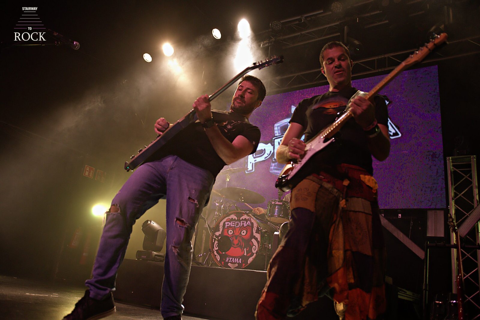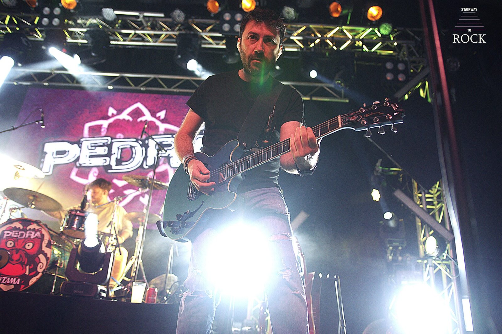 Tras recabar la cálida ovación, a modo de bienvenida, de un respetable que se mostró completamente entregado, cantando como sino hubiera mañana cada una de las composiciones que nos brindaron Pedrá a lo largo de la velada, llegaba el momento de que su frontman, Raúl García, nos saludara y nos diera las buenas noches para acto seguido volver a tirar de nostalgia y poner la sala literalmente patas arriba con el descomunal “Decidí”, que hacía que los más veteranos dentro del “Rock Tansgresivo” alzáramos los puños al aire para corear su inmortal estribillo. Por supuesto que a estas alturas del show Pedrá habían conseguido crear un vínculo especial con el público. De modo que el furor siguió en aumento cuando el cuarteto nos propuso otro de los temas que sirvió al “Rey De Extremadura” y sus secuaces para meter la nariz en los grandes medios “Buscando Una Luna”.