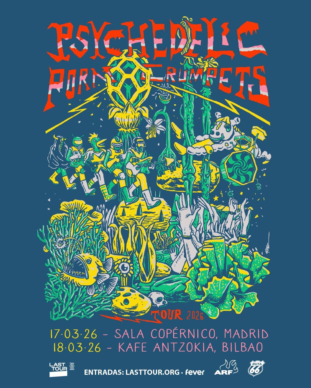 Psychedelic Porn Crumpets aterrizan en Madrid el próximo martes 17 de marzo de 2026 para poner patas arriba la Sala Copérnico. Los australianos, maestros en despachar riffs frenéticos y atmósferas espaciales, no vienen solos: contarán con Ghost Funk Orchestra como invitados especiales para calentar el ambiente con su particular mezcla de psicodelia y groove.