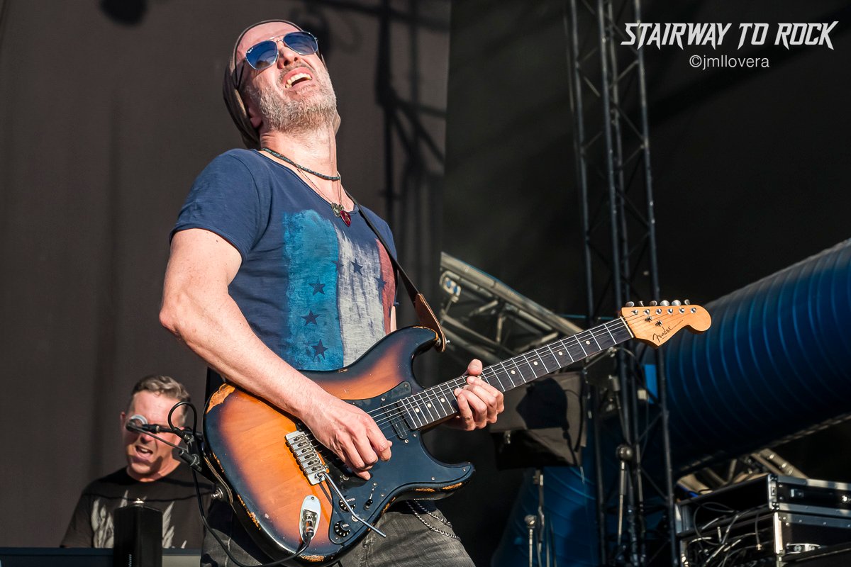 El problema que tengo con 91 Suite es que siempre que les veo, es porque están sustituyendo a otra banda que ha caído del cartel. En dos años era la tercera vez que les iba a ver en un festival con horario diurno, y bueno… Digamos que Raven era una de las grandes razones por las que estaba en el festival. Pues… me como mis palabras y me toca ensalzar otra vez más a la banda liderada por el enorme Jesús Espín. Nada más tomar el escenario espetó un “aquí hace más calor que en Murcia” y se metieron bien pronto a la gente en el bolsillo al ritmo de “Seal It with a Kiss” y “Times They Change”.