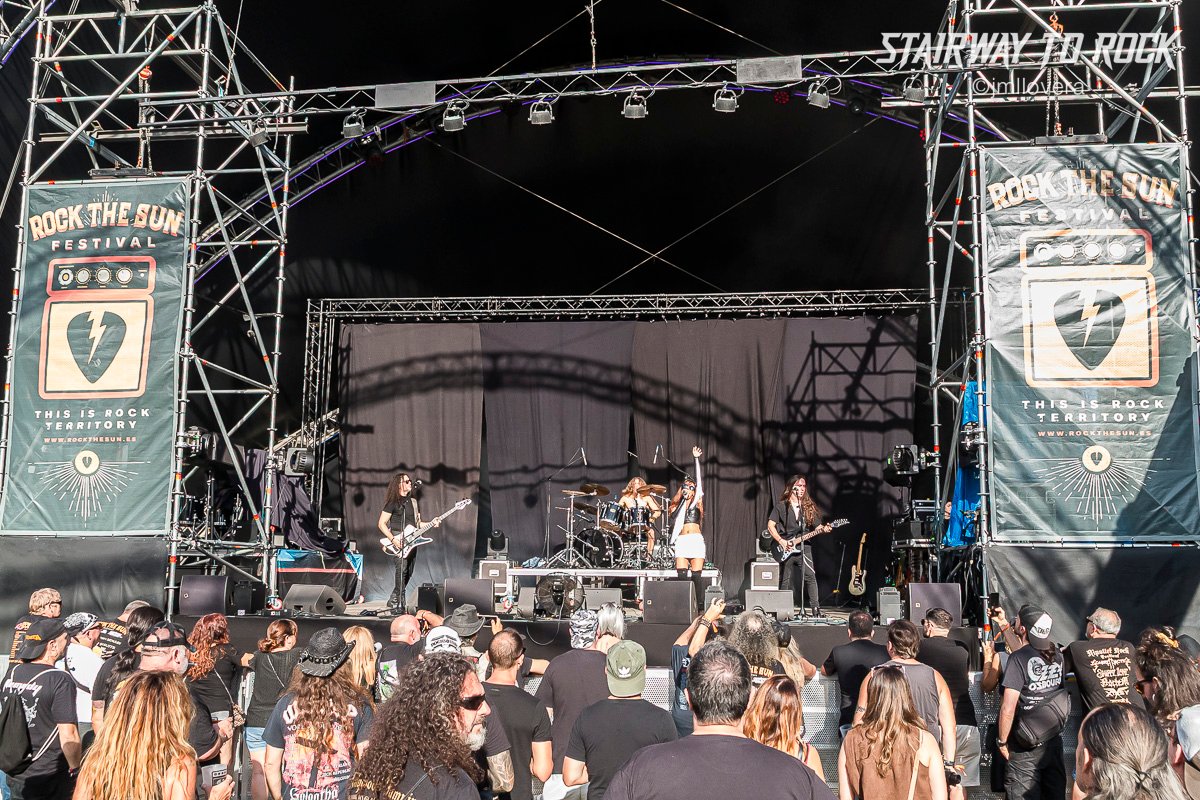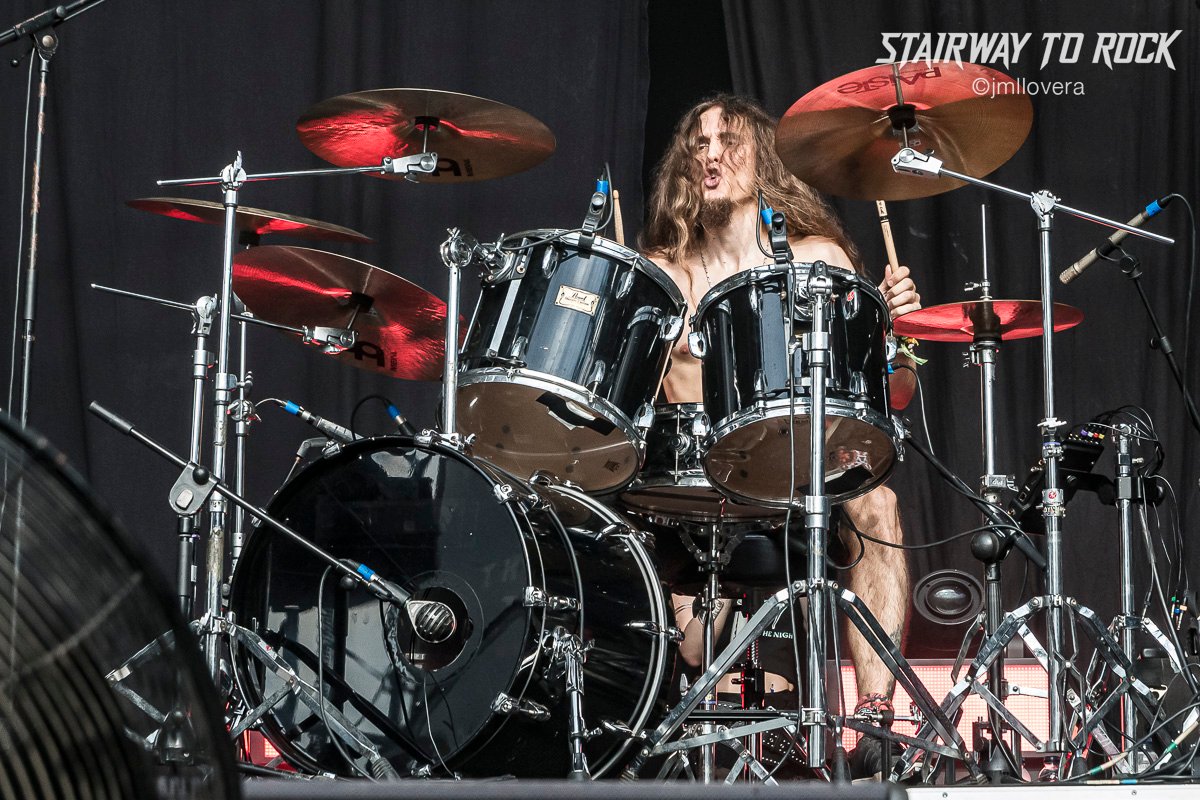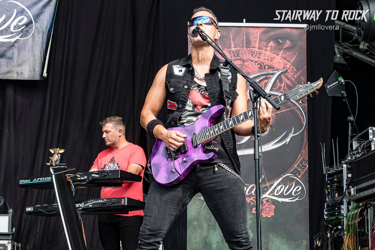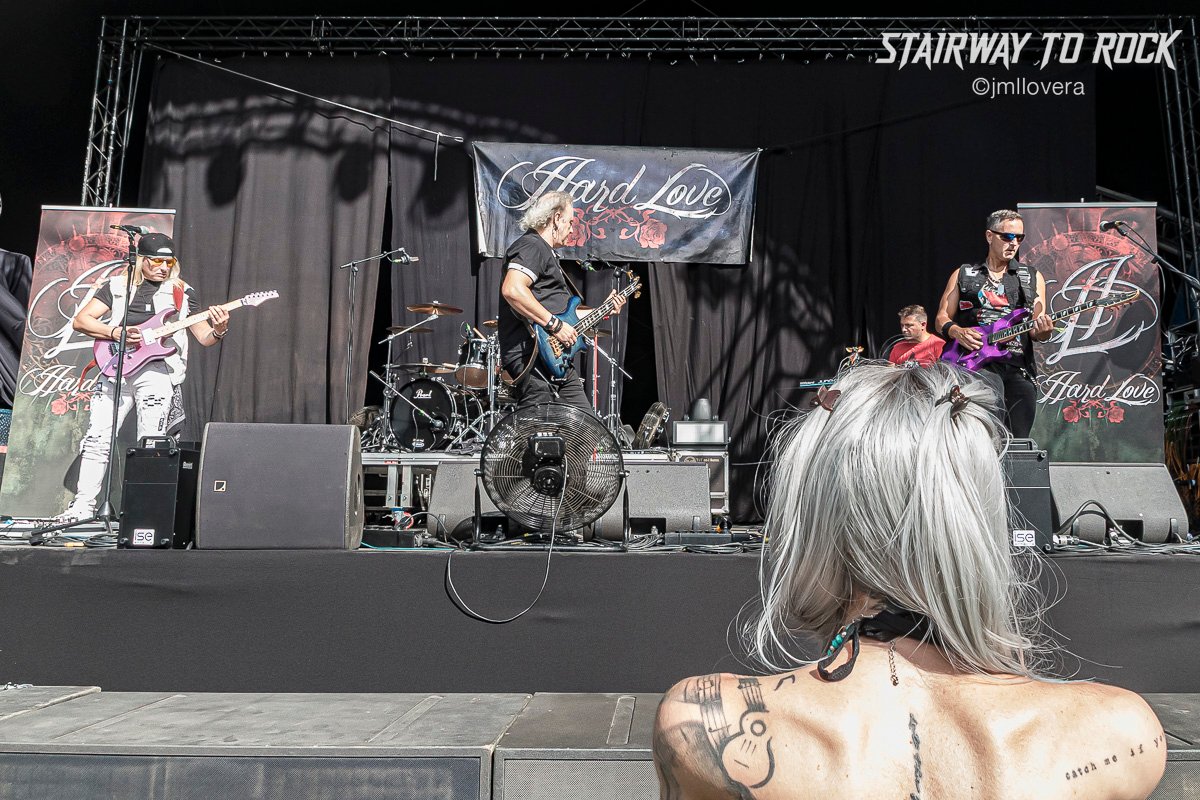 Desde Murcia y bajo un sol de justicia impartieron Hard Love su adoración sónica por los 80 y por el hard rock de pedigrí a la vez que lo apoyaban con mensajes contra el maltrato. El sexteto animó el caluroso medio día y aportaron color y actitud con guitarras rosas y lilas o el detalle del vocalista Pedro Oliva portando un pie de micro rojo al puro estilo Eclipse. Hubo canciones realmente festivas y agradaron a un público que se refugiaba en las pocas sombras que había. Destacó una canción muy animosa un set cantado en castellano y lucieron con ese cartel con su logo y las rosas. Llevan bastantes años de trayectoria, y eso se les nota.