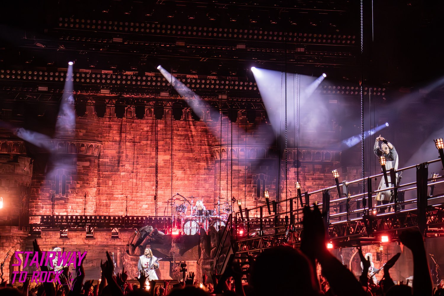 Impresionante… no quise tener spoliers de ningún tipo y conseguí llegar a Manchester sin saber apenas nada de lo que se nos venía encima. Si ya aluciné con el nivel de show que llevaron PowerWolf en el Leyendas, de verdad que los suecos doblan la apuesta y van a por todas. Está más que claro que saben que a las bandas míticas llena-estadios están en su crepúsculo y que se apagarán cual supernovas. Ellos quieren estar allí. Lo que tenemos que tener claro es que la asistencia europea en sus shows de cabezas de cartel no es la misma que la que hay en España, es muy superior.