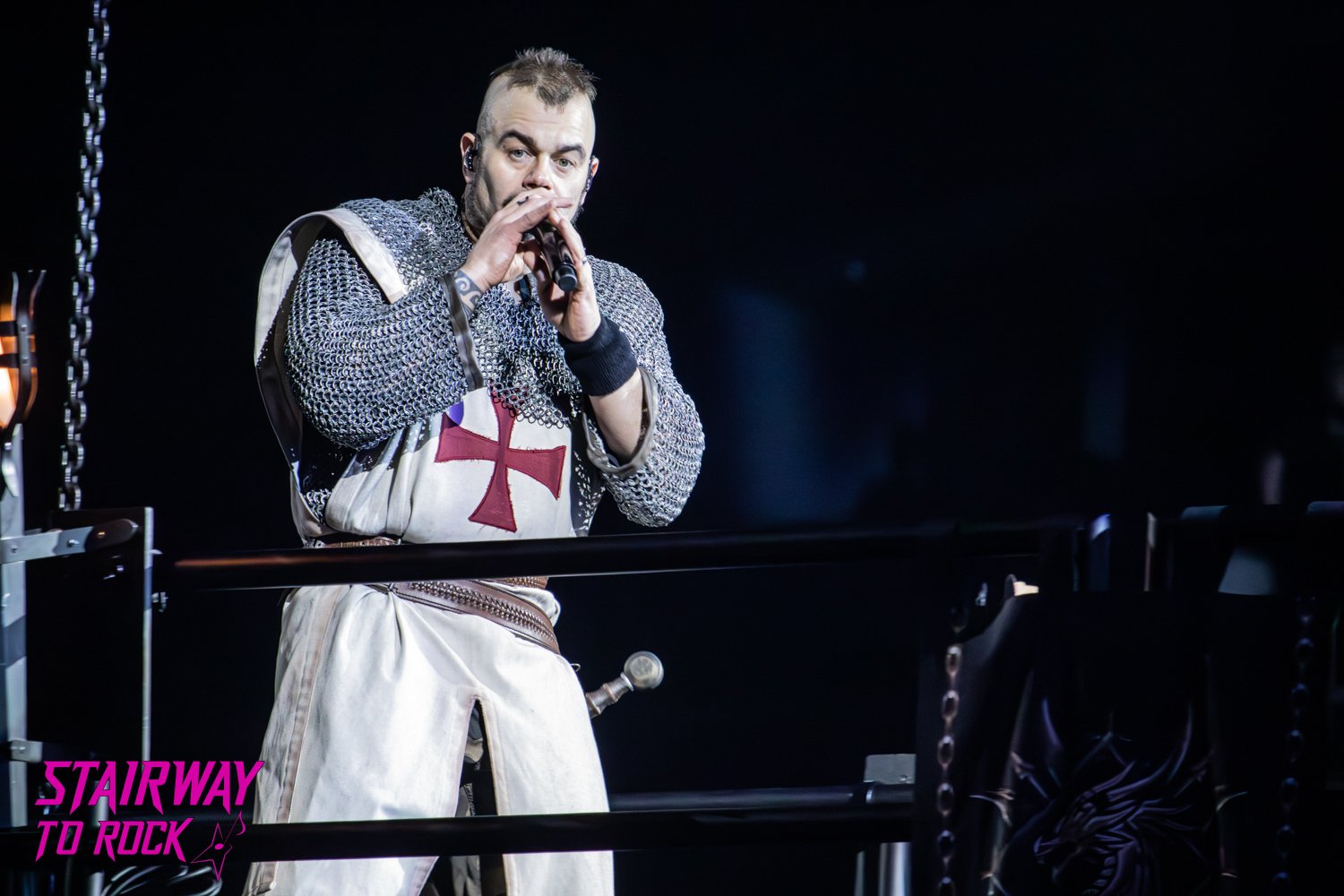 Entonces, bajó un larguísimo puente desde el techo, con luces y antorchas y los templarios se despojan de sus cascos y atraviesan el puente: son los miembros de Sabaton, para tocar “Templars” con Joakim quedando en medio del puente. Gran inicio en el que volverá el grupo al escenario B para la interpretación de “The Last Stand”. En un abrir y cerrar de ojos les han proporcionado micros mientras que Hannes Van Dahl aporrea la batería en el otro escenario. Vuelven todos al grande y atacan “Hordes of Khan” con la presencia de Kublai. El sonido es perfecto, las voces de los coros son reales y esta canción parece que va a quedar como clásica.